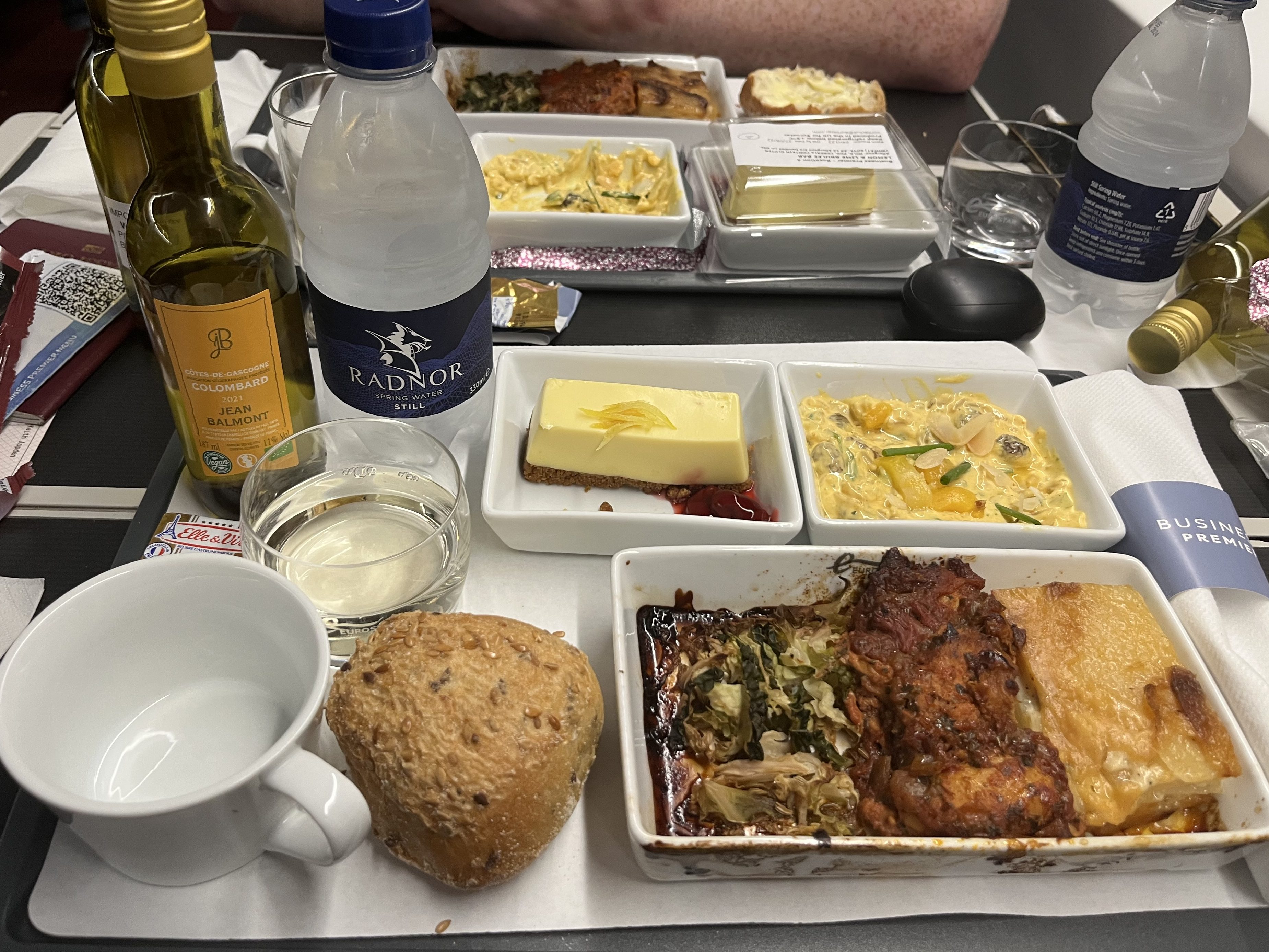 Both meals are pictured below. The presentation of both wasn’t amazing for a premium class of travel, but I found the taste to be good in both cases.