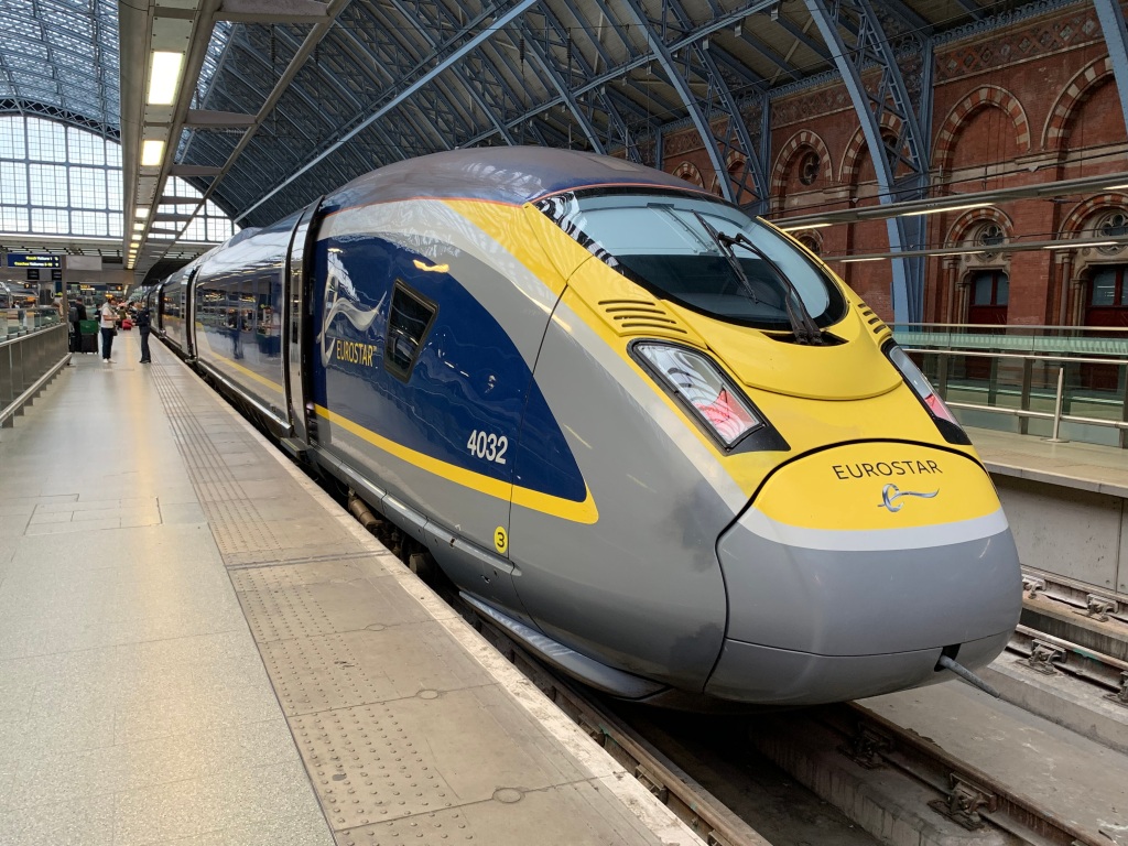 Both Eurostar 🔵 and Thalys 🔴 have two types of trains in their fleet all capable of operating up to 300 kilometres per hour. The most common types of train for each company, and the newest, is the e320 for Eurostar and the PKBA for Thalys which are pictured below. These Eurostar trains have sixteen carriages, while these Thalys trains have eight carriages – with two sets sometimes coupled together to make sixteen carriages.