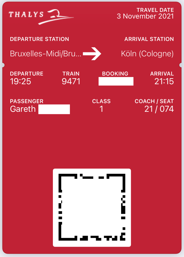 Assuming tickets are purchased online, both operators offer mobile ticketing for travel on their services producing a barcode that can be downloaded to your device such as an Apple Wallet. Otherwise there is the ability to print your ticket on an A4 piece of paper or collect at the station on departure. It is, however, not possible to print the online Thalys ticket at stations in Belgium, and print at stations in the Netherlands a fee is charged.