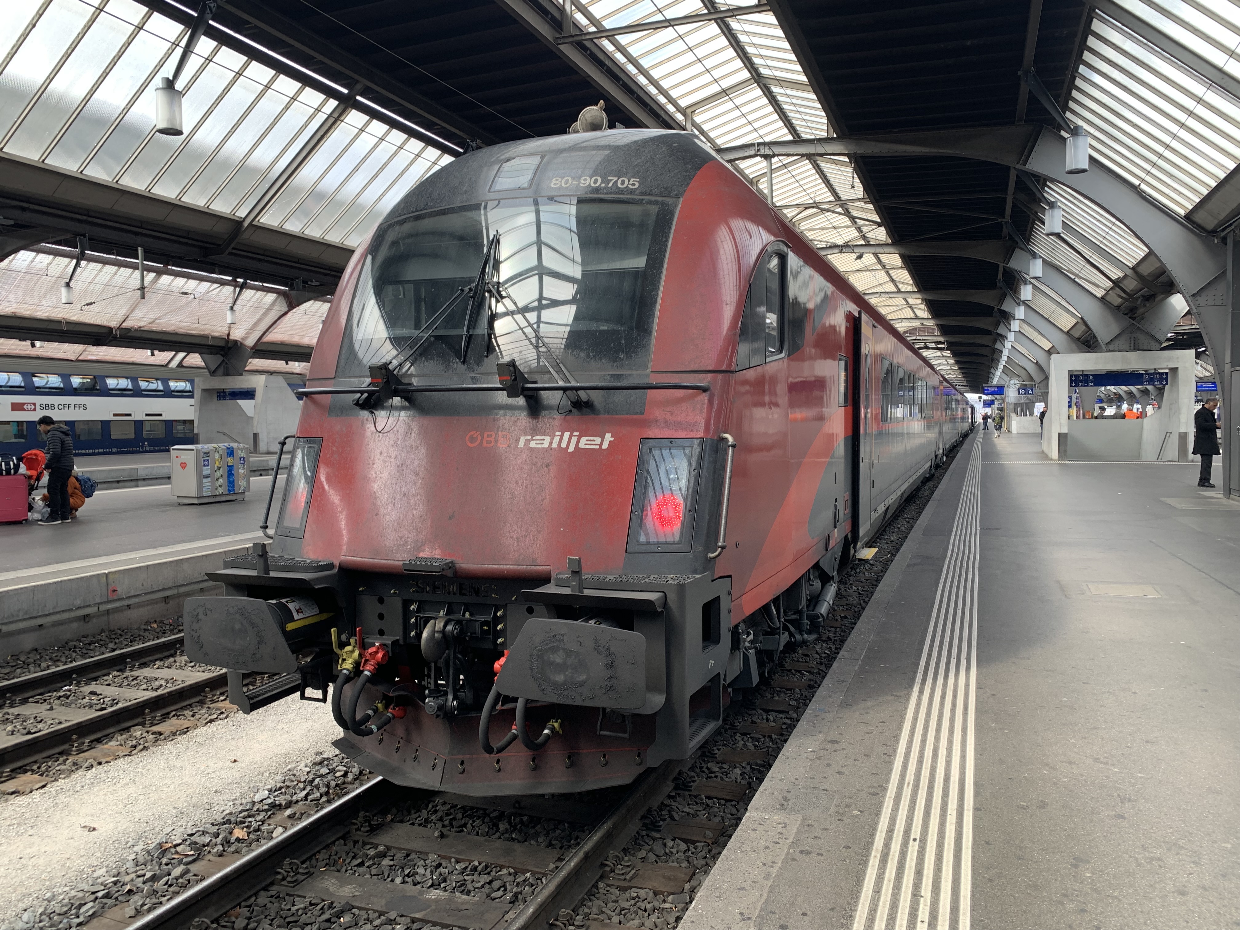 Most of these trains are operated by the RailJet, the modern flagship intercity train of the Austrian Federal Railways (ÖBB) capable of travelling at 230 kilometres per hour (143mph) known for its three classes of travel and dining car – so I opted for one of these. More specifically I took the 12:40 departure that starts its journey in Zürich and is bound not just for Vienna, where I was headed to, but actually finishes its journey in Bratislava, Slovakia. One for another trip.