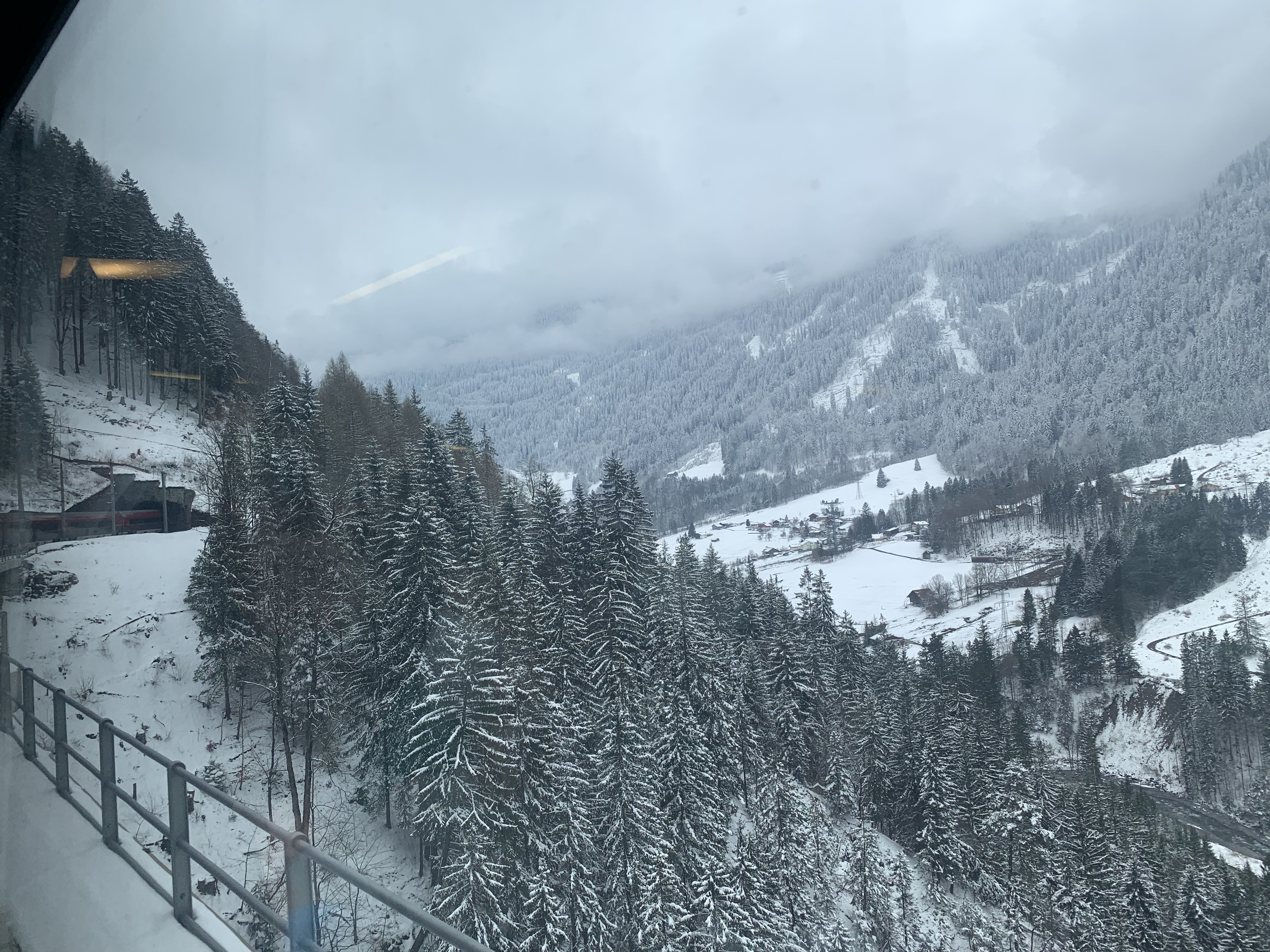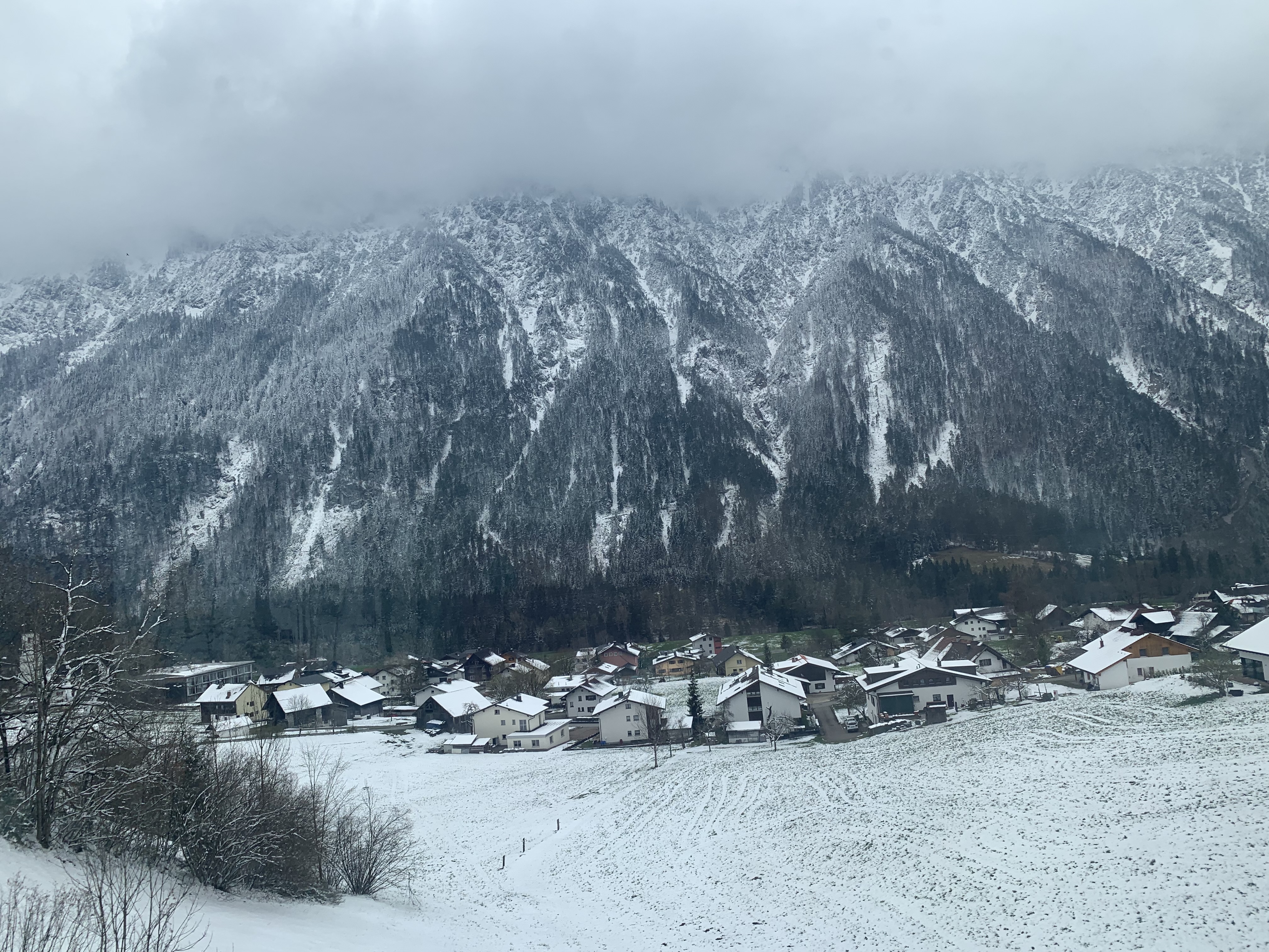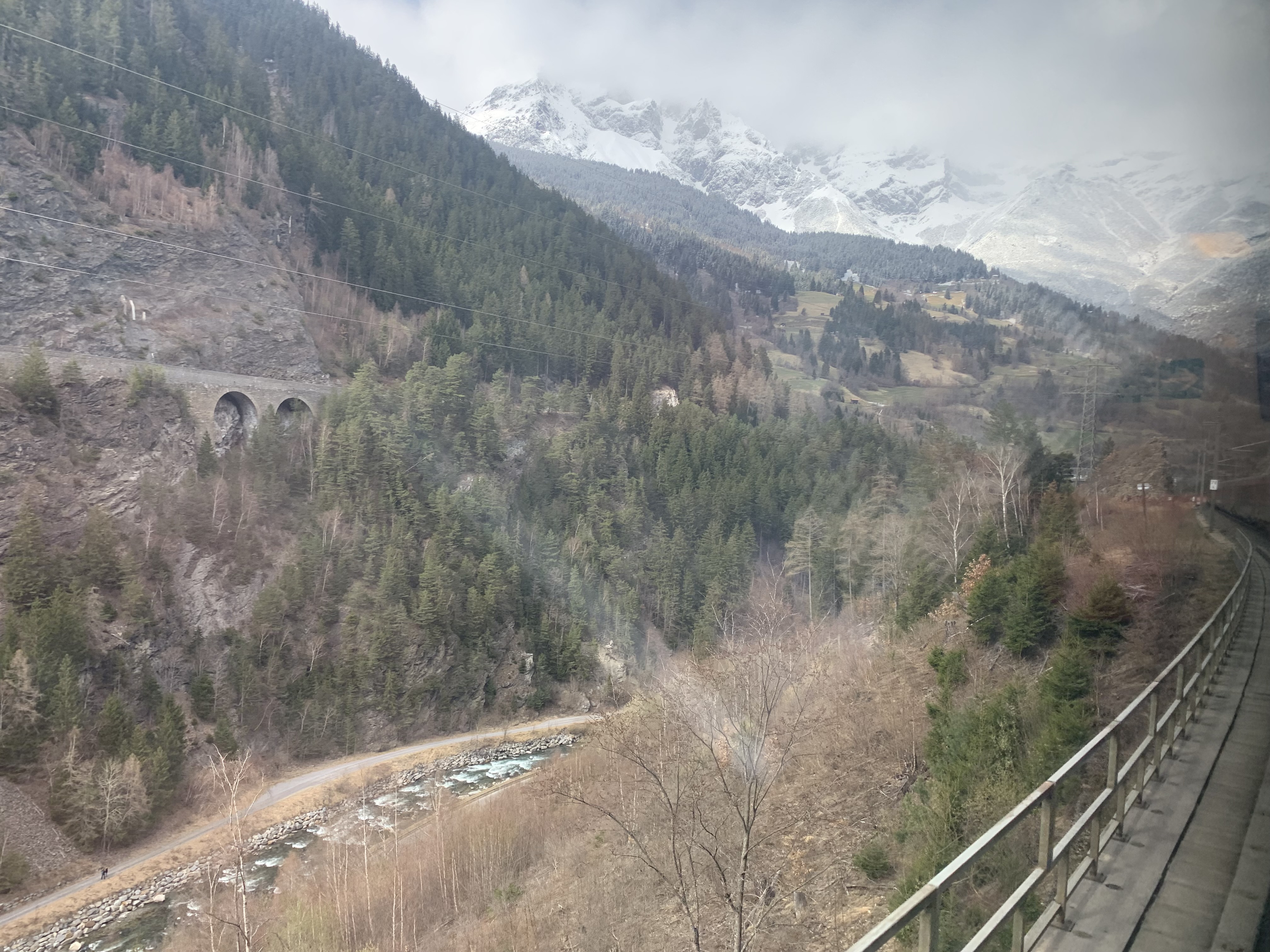 The dramatic scenery on this route was a feast for the eyes for most of the journey. On departure from Zürich, the train runs along two lakes, Zürichsee and Walensee, before starting the ascent to the stunning Arlberg Pass, reaching a modest 1,310 metres above sea level. To add to the magic, in April time there were snowy landscapes thrown in. The snow on the ground increased as the train reached the highest part of the line, then the train travels through the short Arlberg Tunnel before descending into Innsbruck, and eventually Salzburg and Vienna.