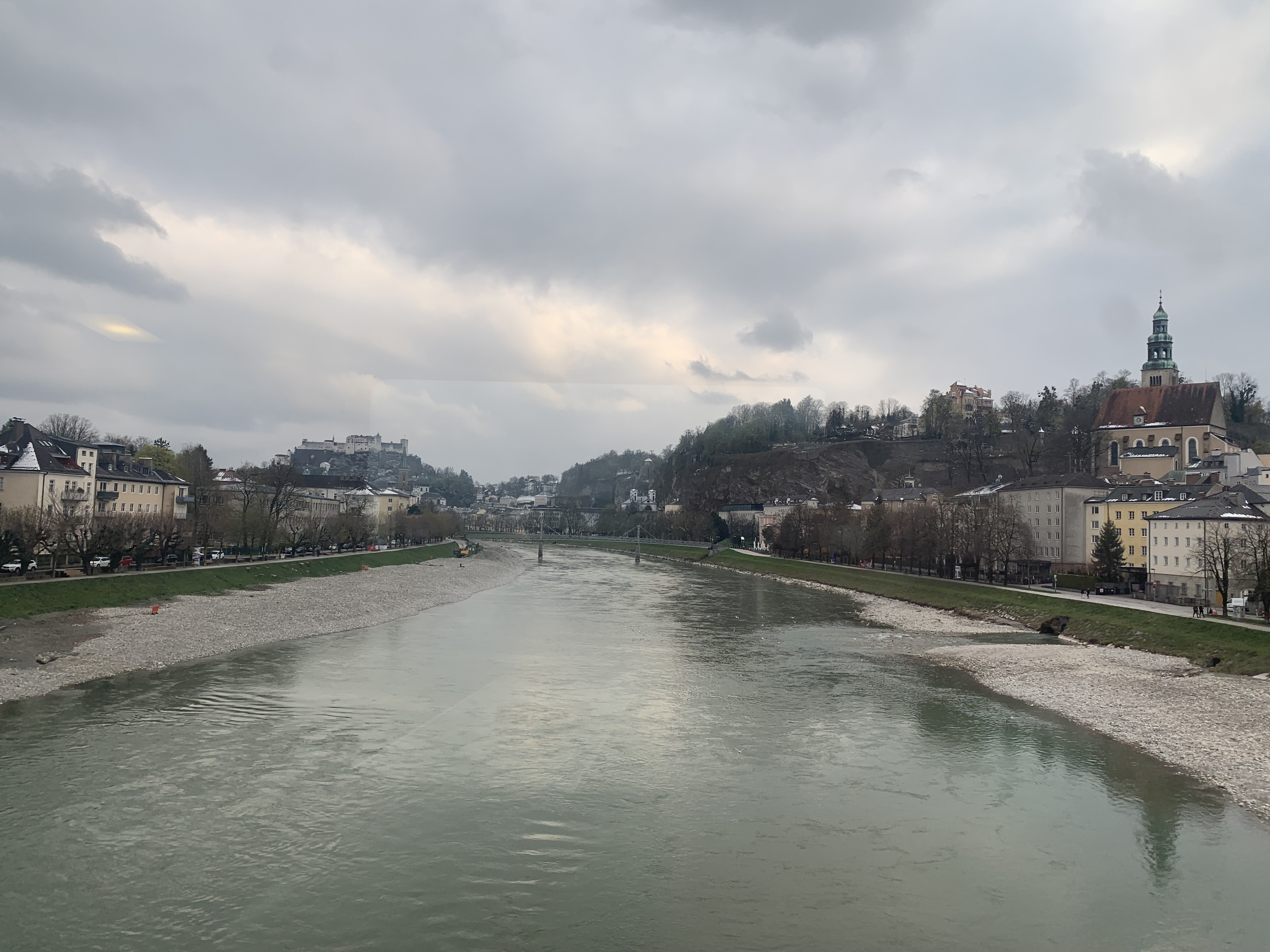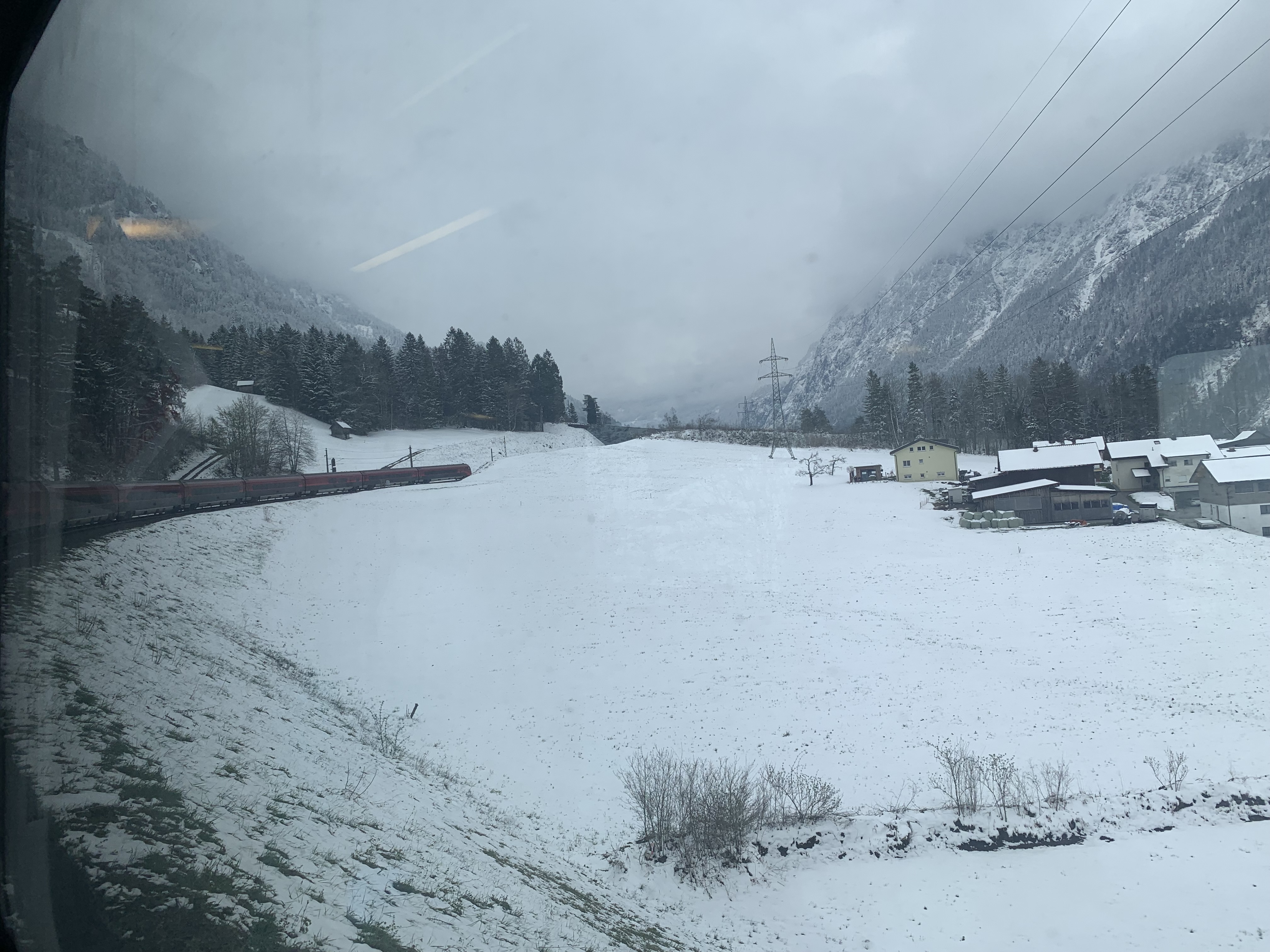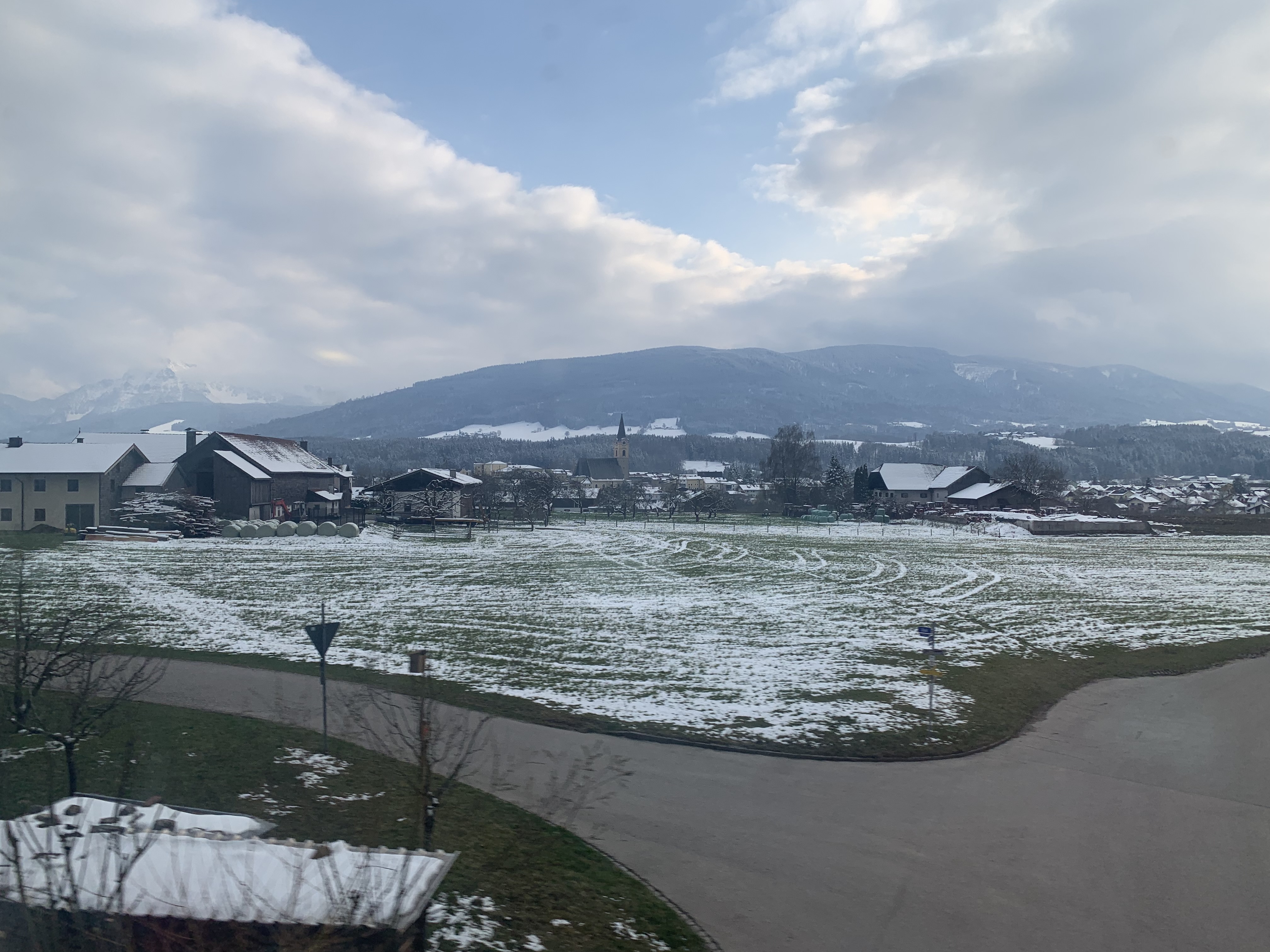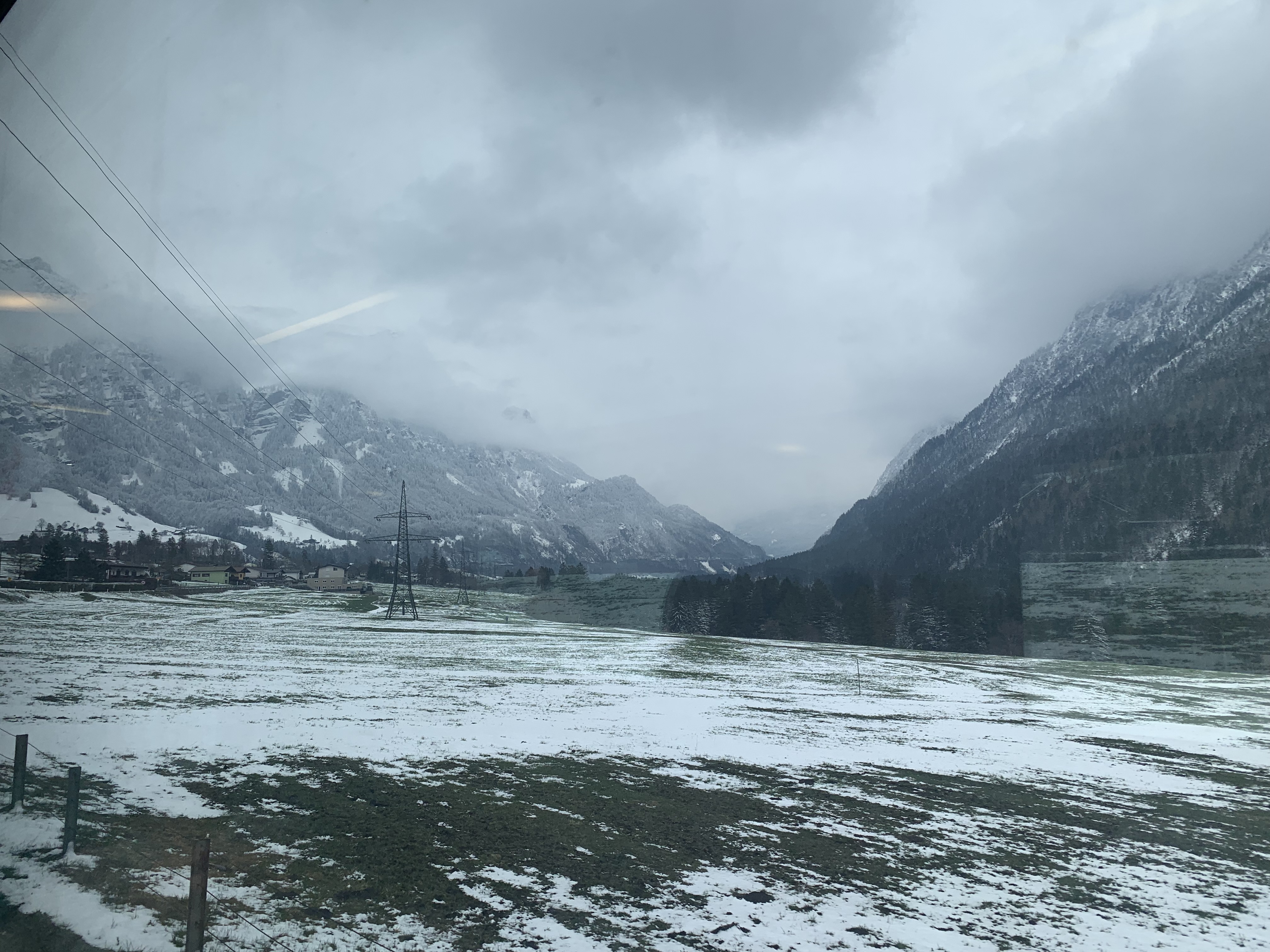 The dramatic scenery on this route was a feast for the eyes for most of the journey. On departure from Zürich, the train runs along two lakes, Zürichsee and Walensee, before starting the ascent to the stunning Arlberg Pass, reaching a modest 1,310 metres above sea level. To add to the magic, in April time there were snowy landscapes thrown in. The snow on the ground increased as the train reached the highest part of the line, then the train travels through the short Arlberg Tunnel before descending into Innsbruck, and eventually Salzburg and Vienna.