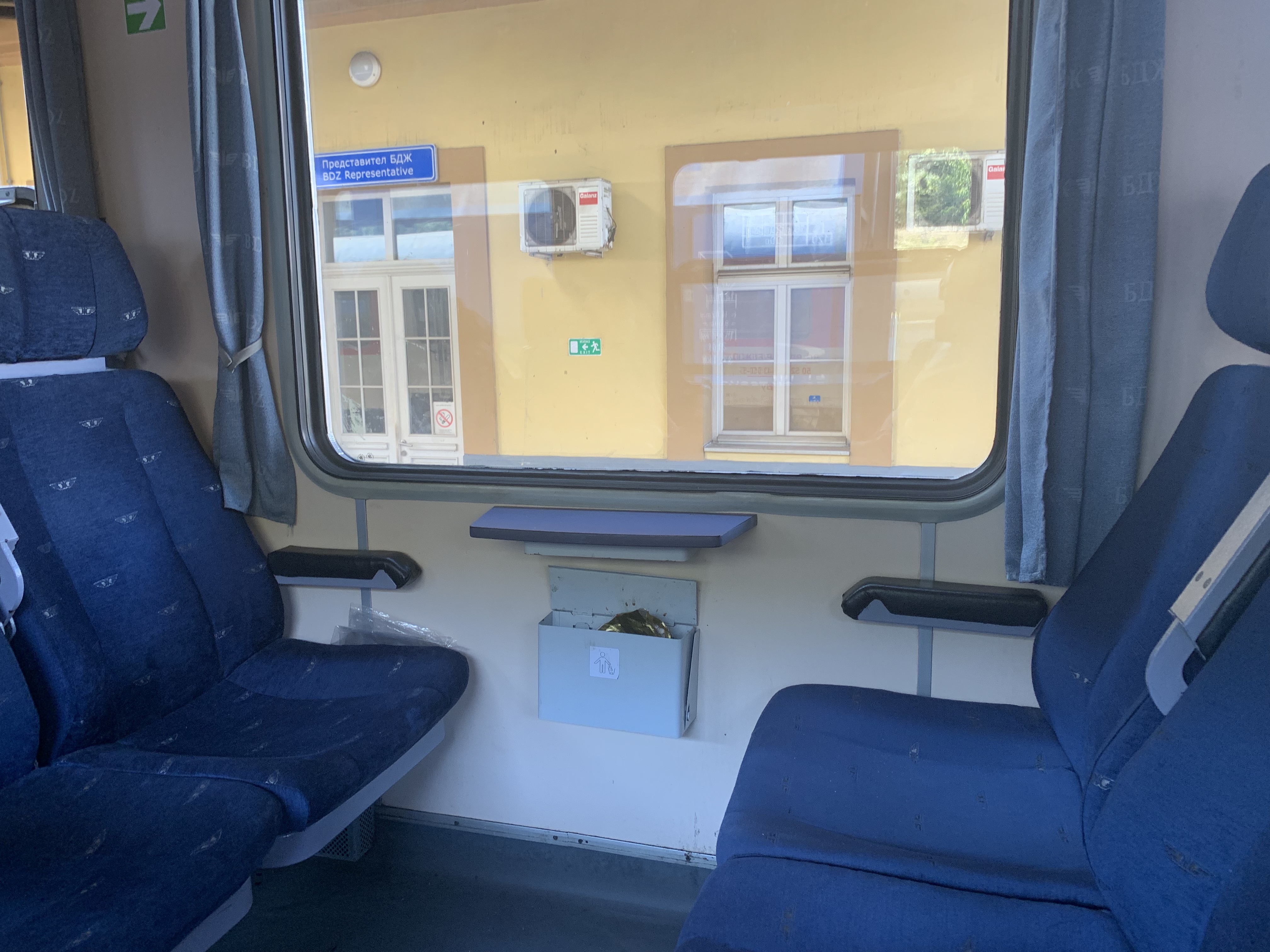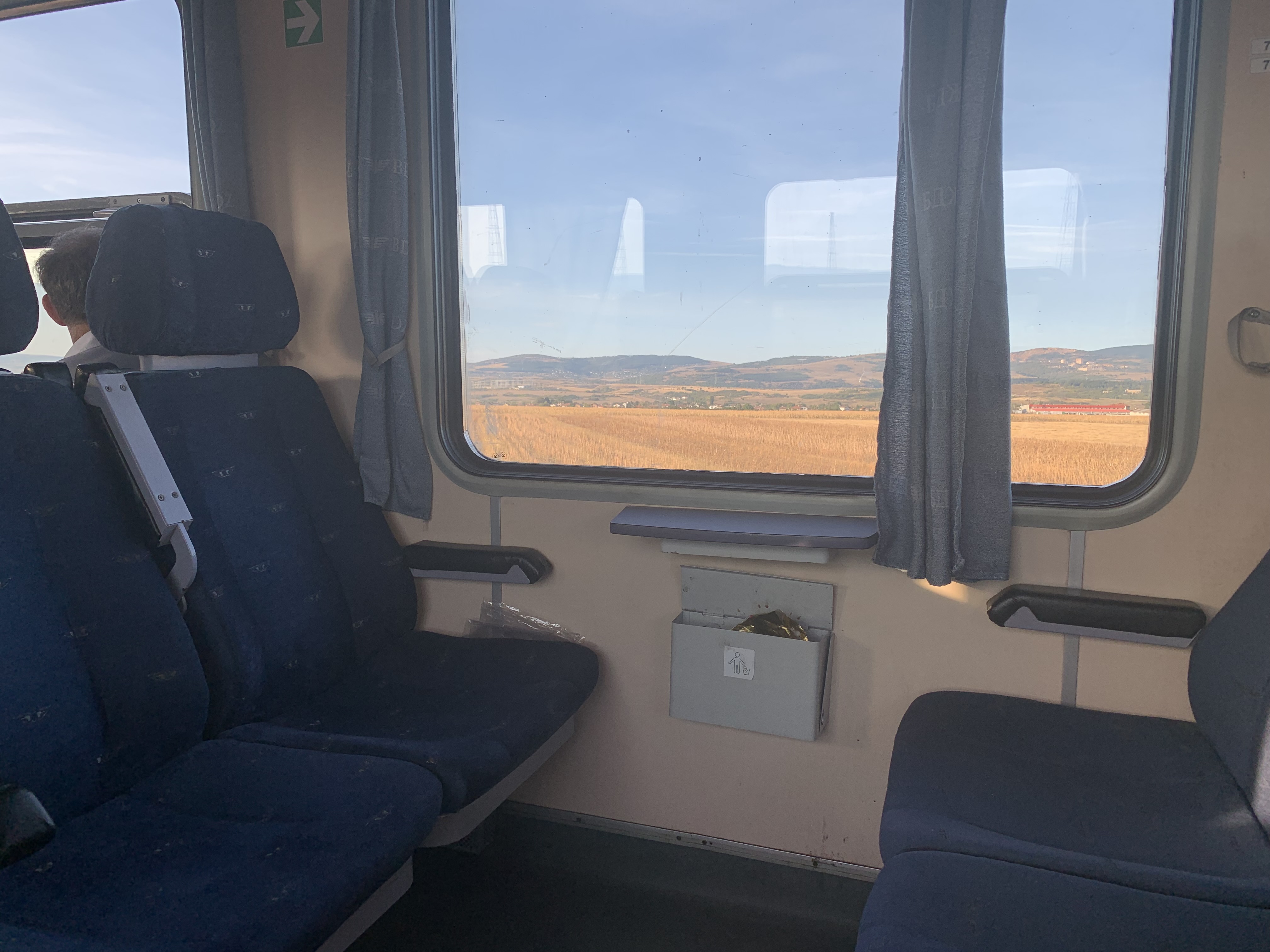 As we boarded the Second Class only Dimitrovgrad to Sofia train, we were immediately hit by how hot the carriage was inside – the train must have been sat in the sun for the whole day since its outward journey from Sofia. It was the first train on our journey from the UK without air conditioning and we had soon realised how spoilt we were on our previous trains. Myself and my new found friends wasted no time in opening all of the windows in the carriage for much needed respite. On departure, we were joined by three other passengers resulting in total occupancy of seven passengers.