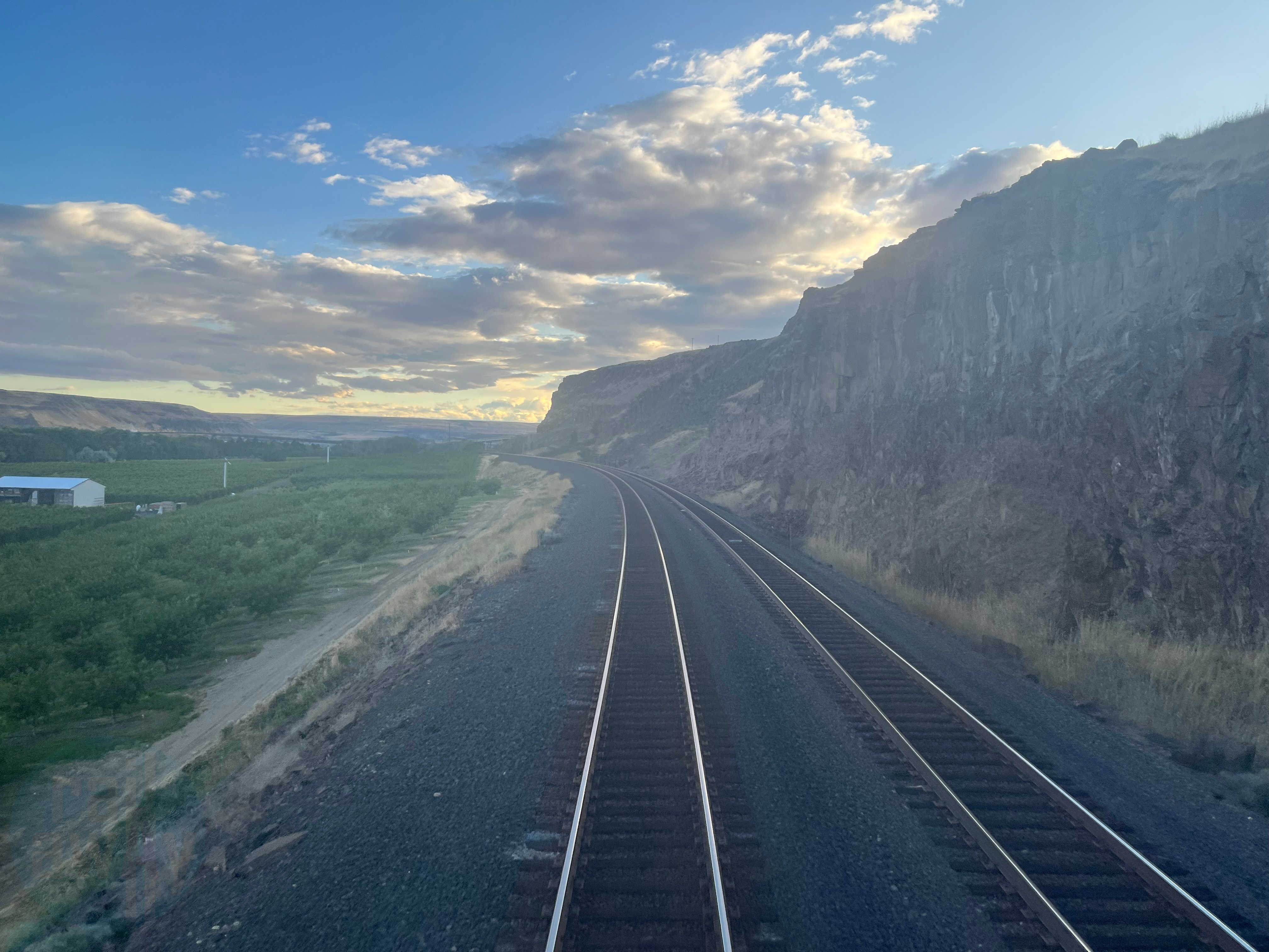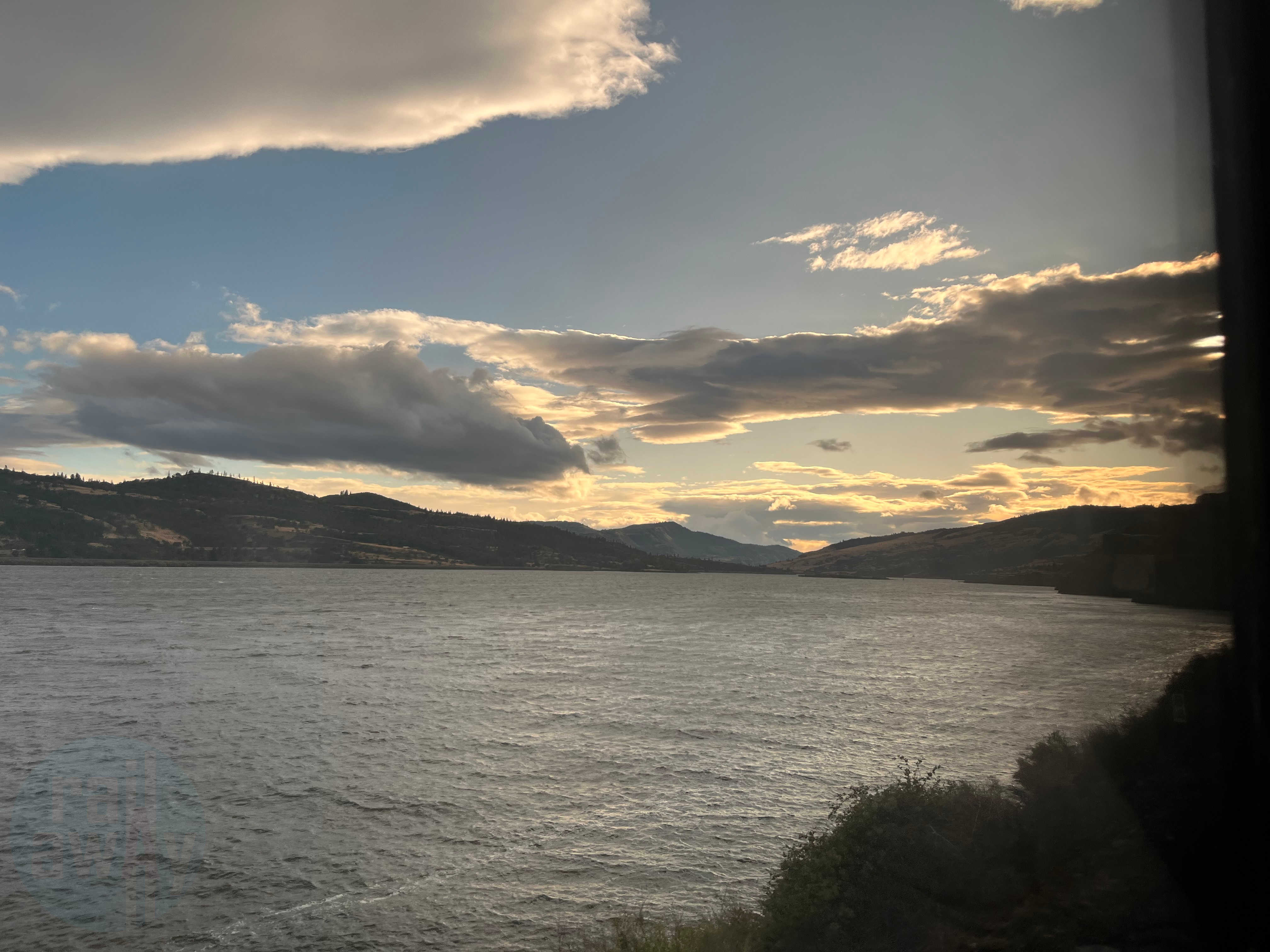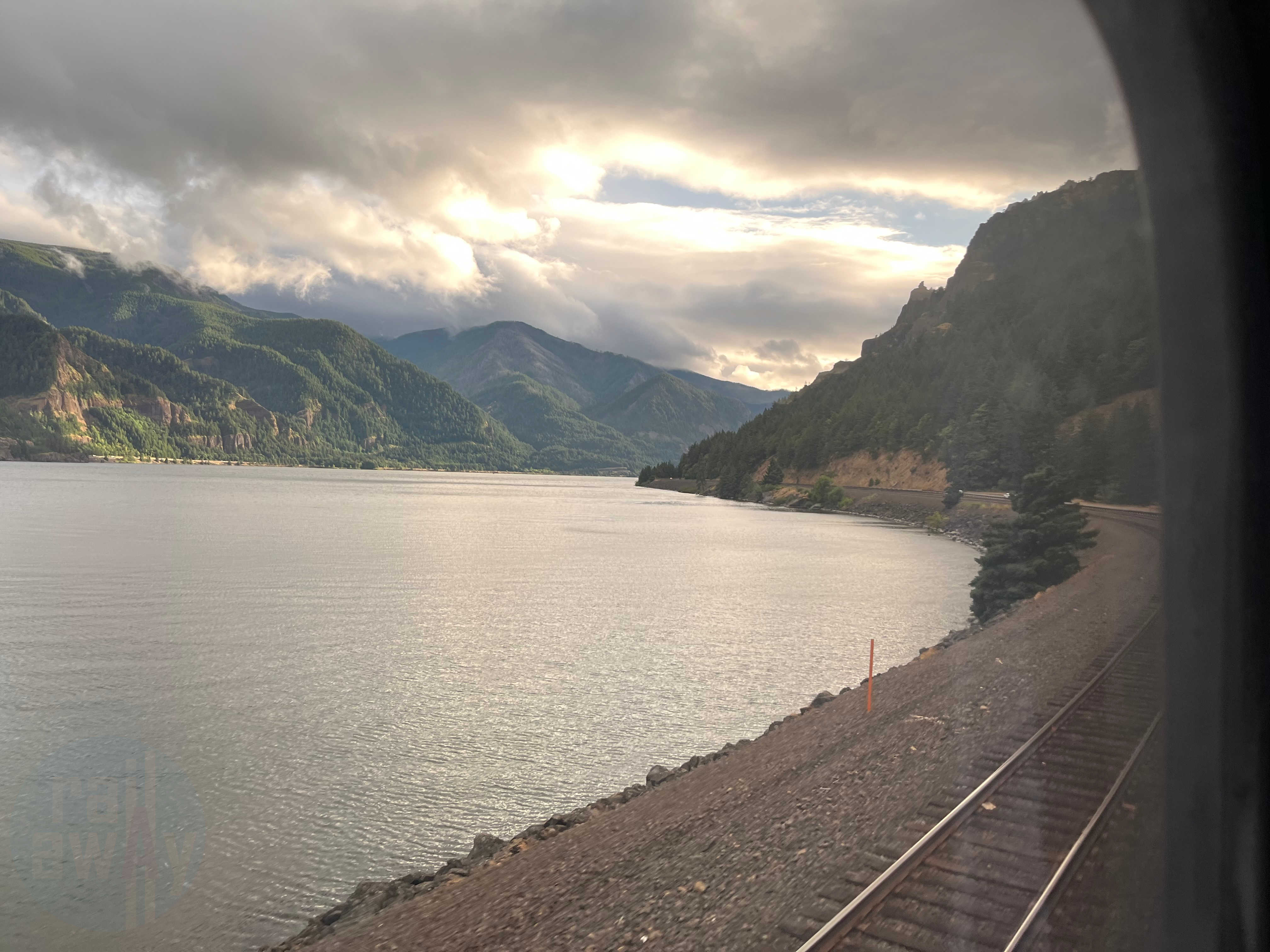 Firstly, the Portland eastbound portion of the Empire Builder runs along the stunning Columbia River Gorge in the evening with the best views on the right hand side.