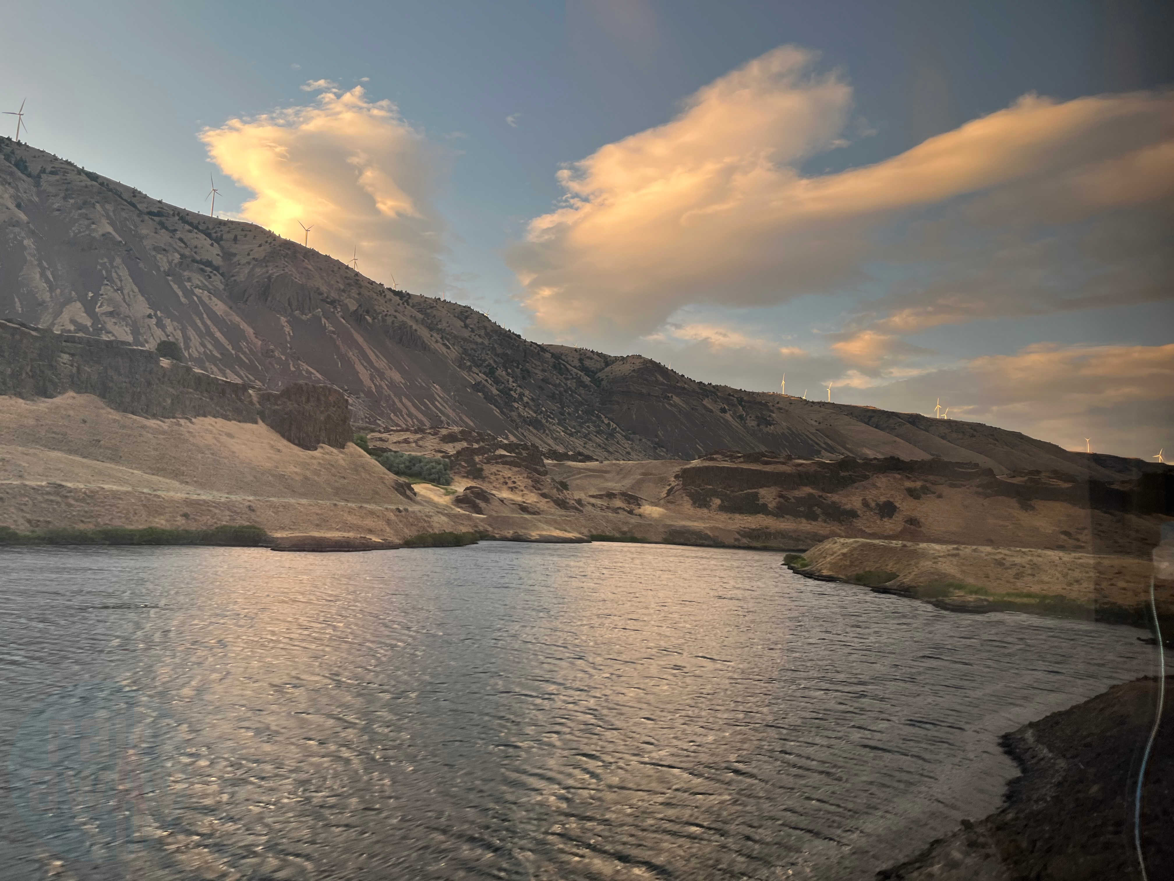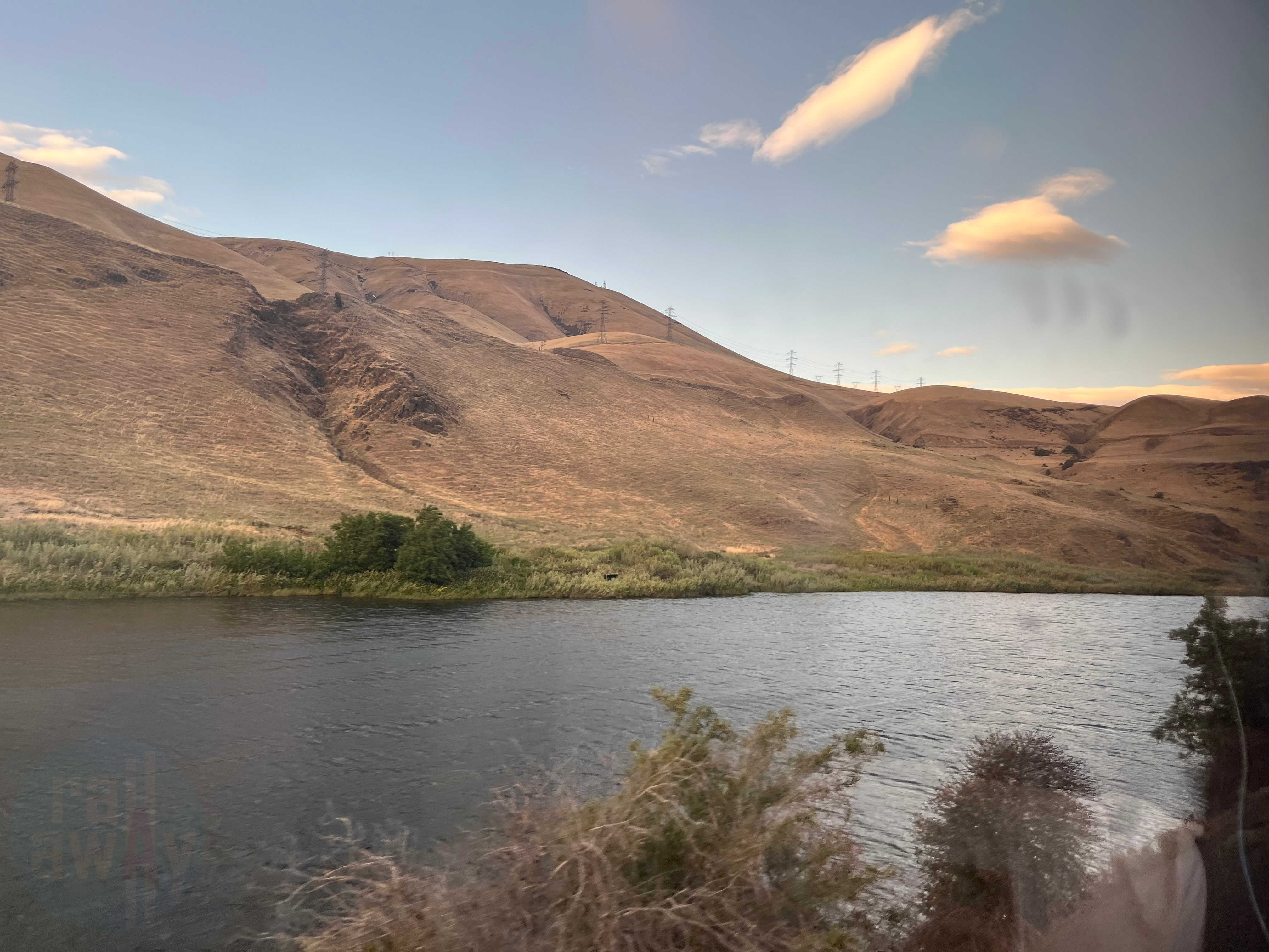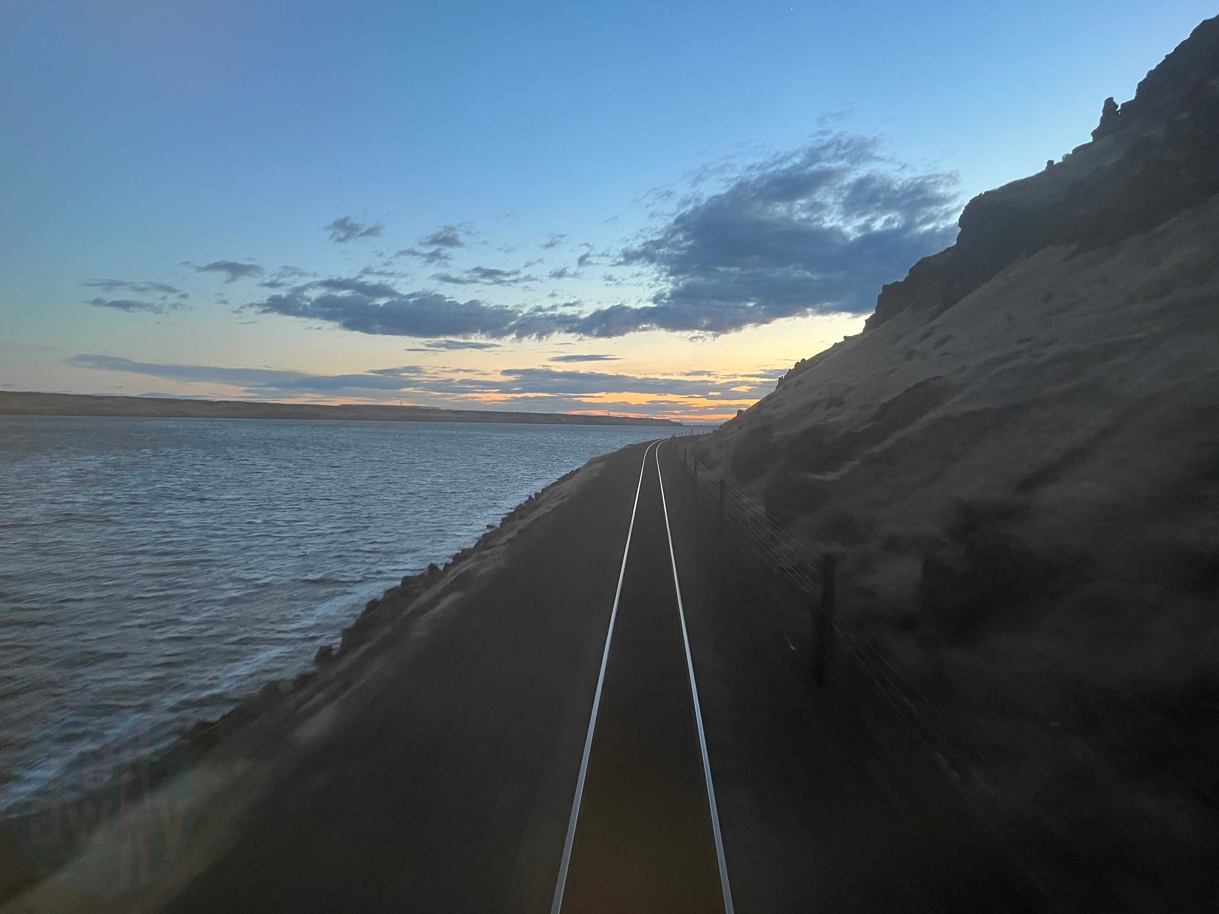 Firstly, the Portland eastbound portion of the Empire Builder runs along the stunning Columbia River Gorge in the evening with the best views on the right hand side.
