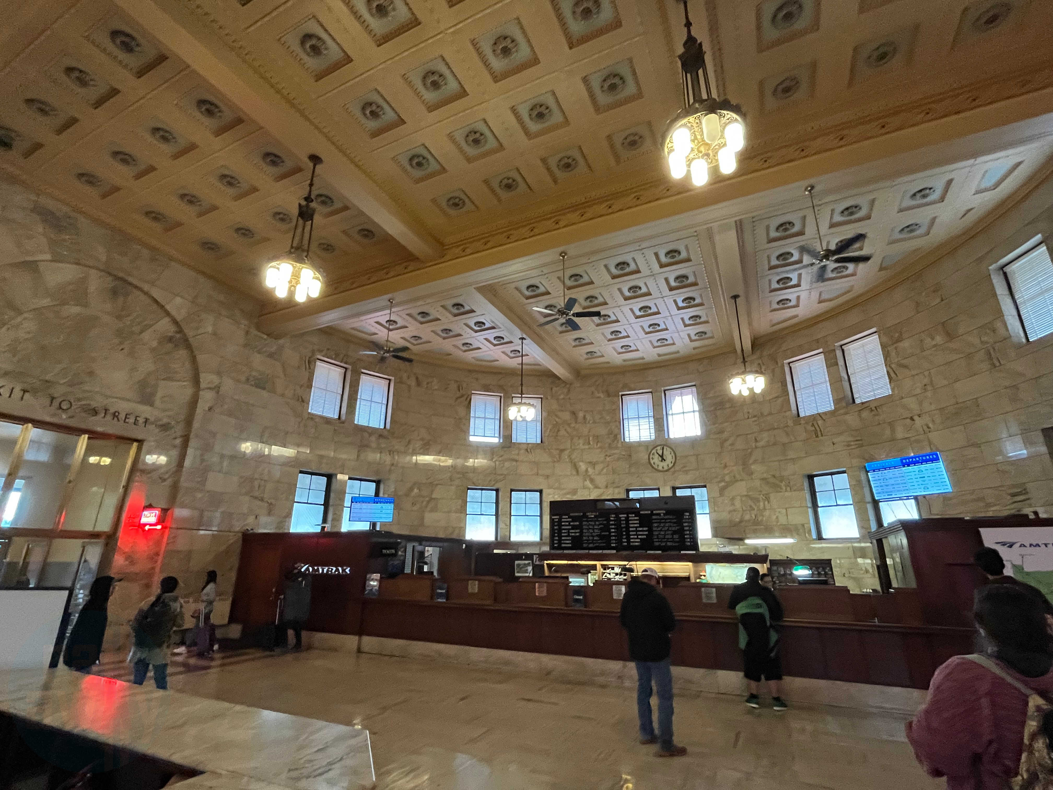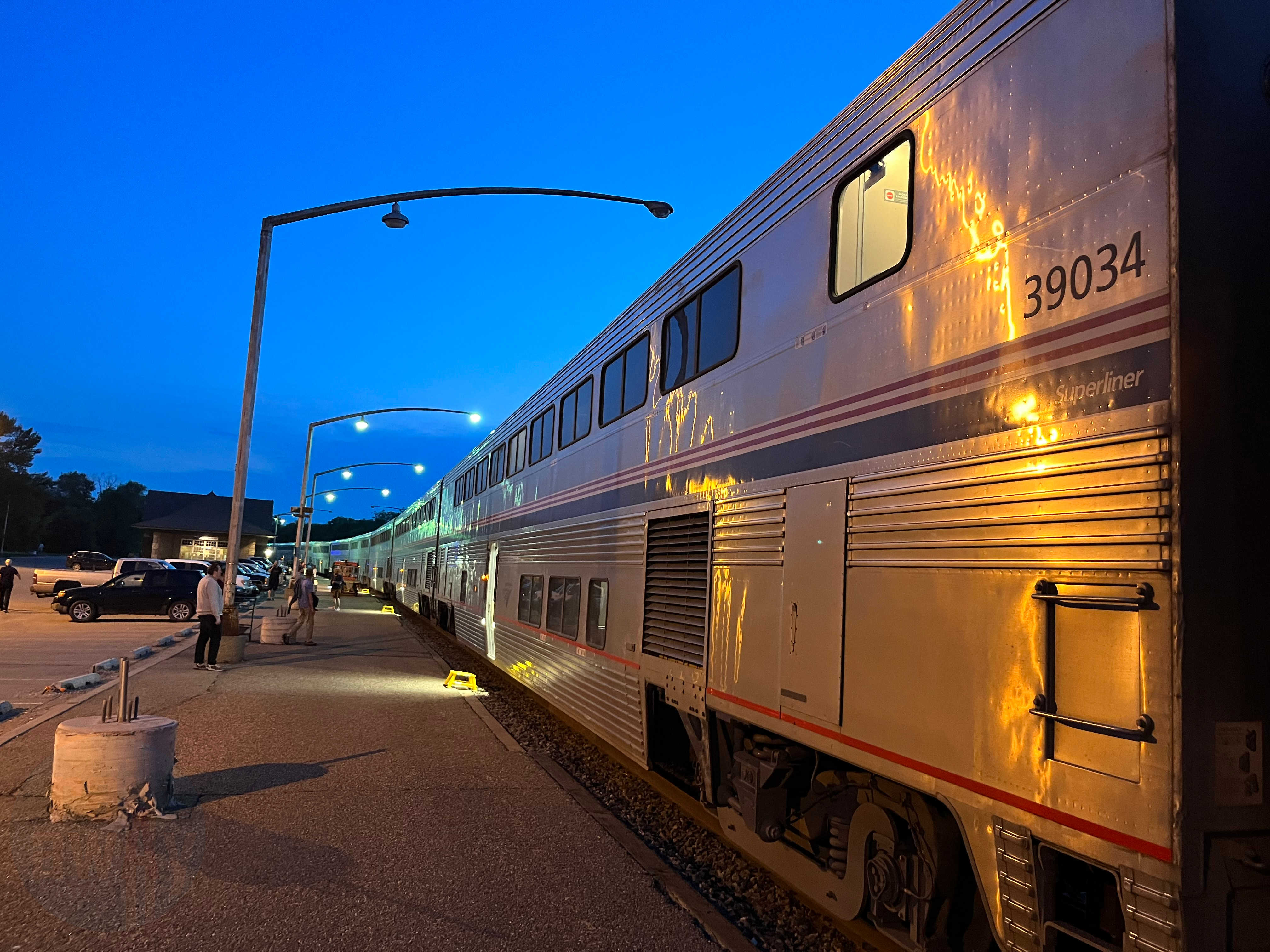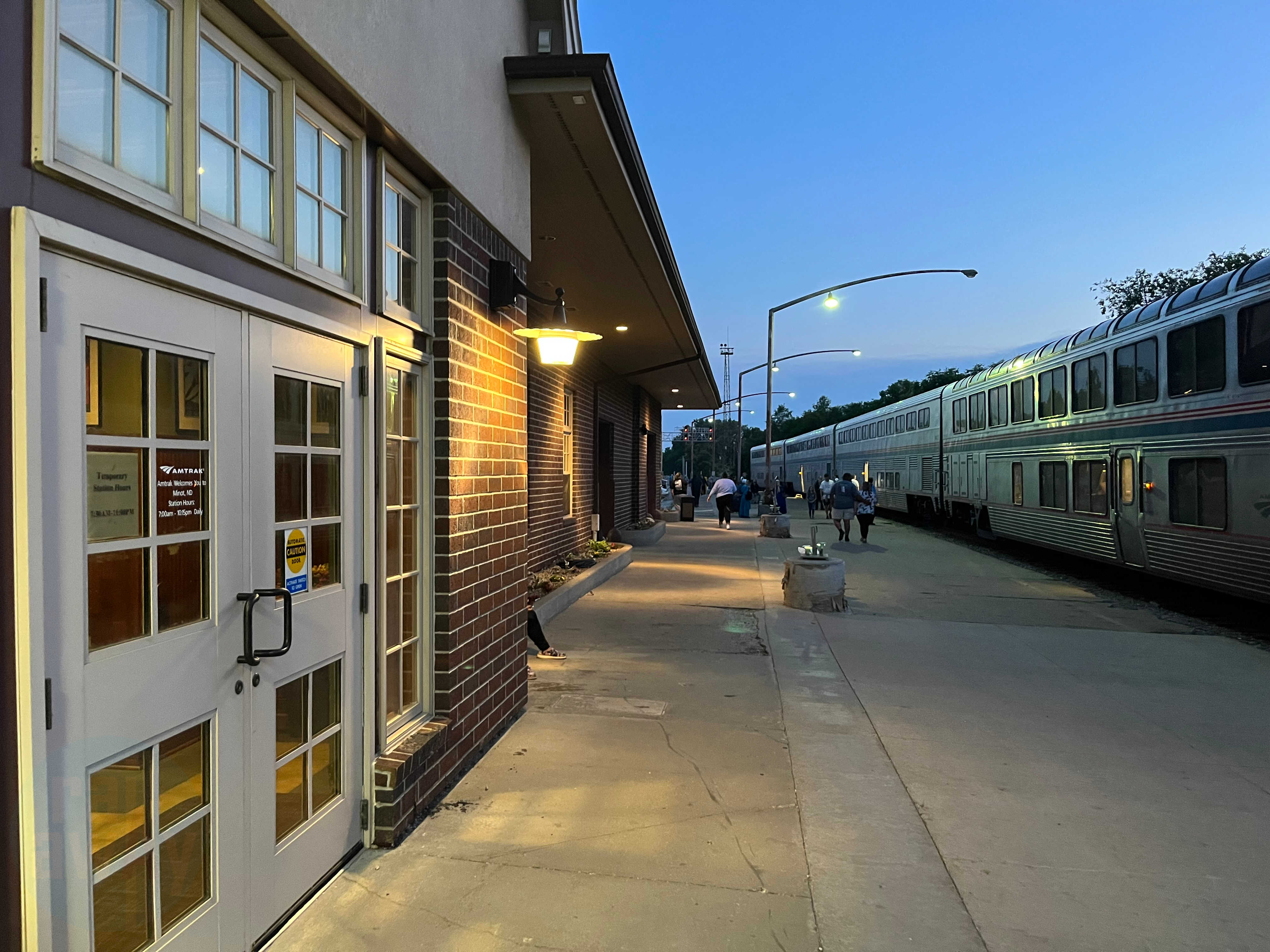 Long distance Amtrak trains have ‘smoke stops’ that take place often a few times a day. These are often operational breaks where tasks such as refuelling trains take place but also double-up as an opportunity for passengers to stretch their legs. The train staff on this route didn’t recommend going too far as the train doesn’t spend long at stations and won’t wait!