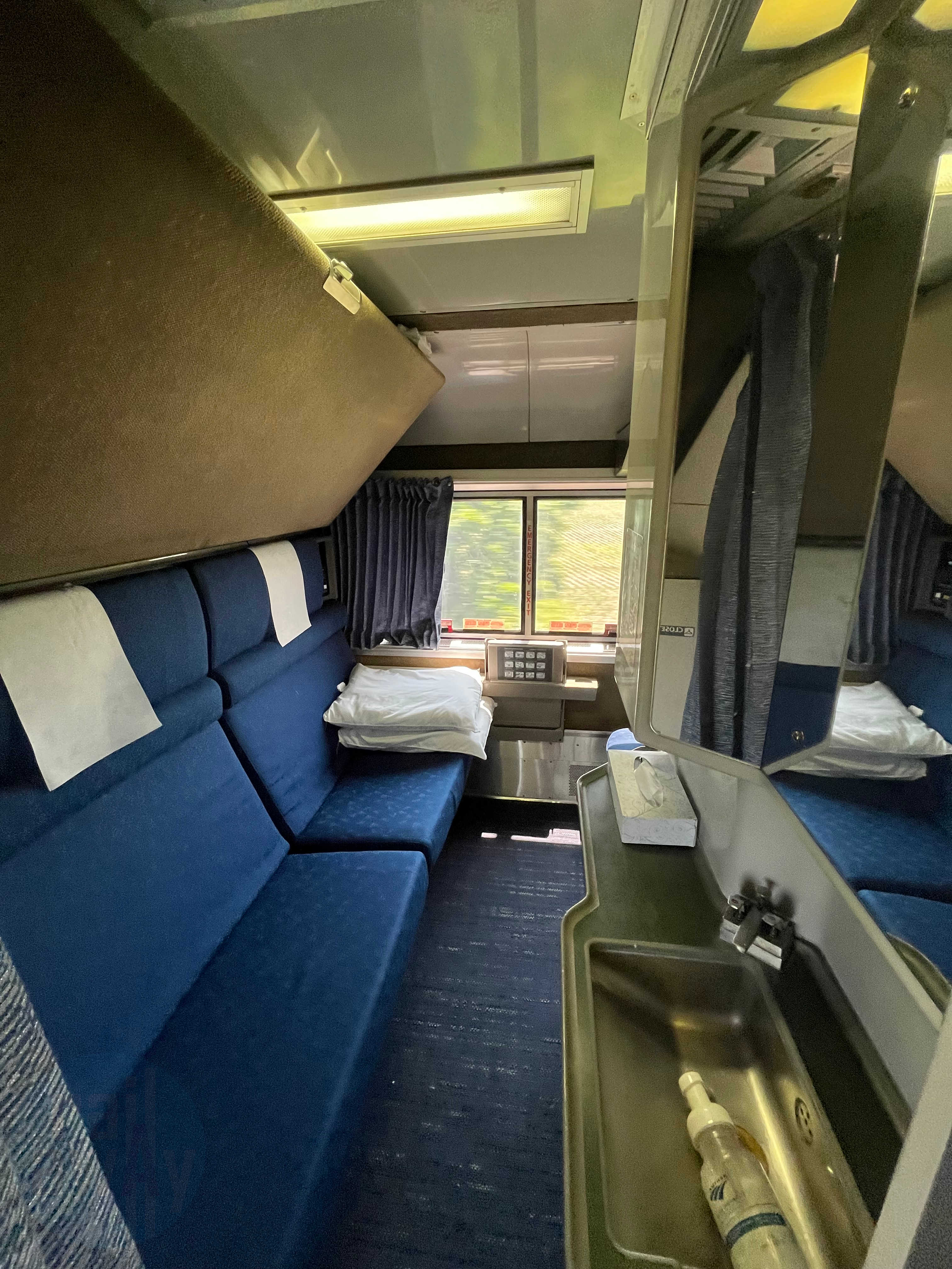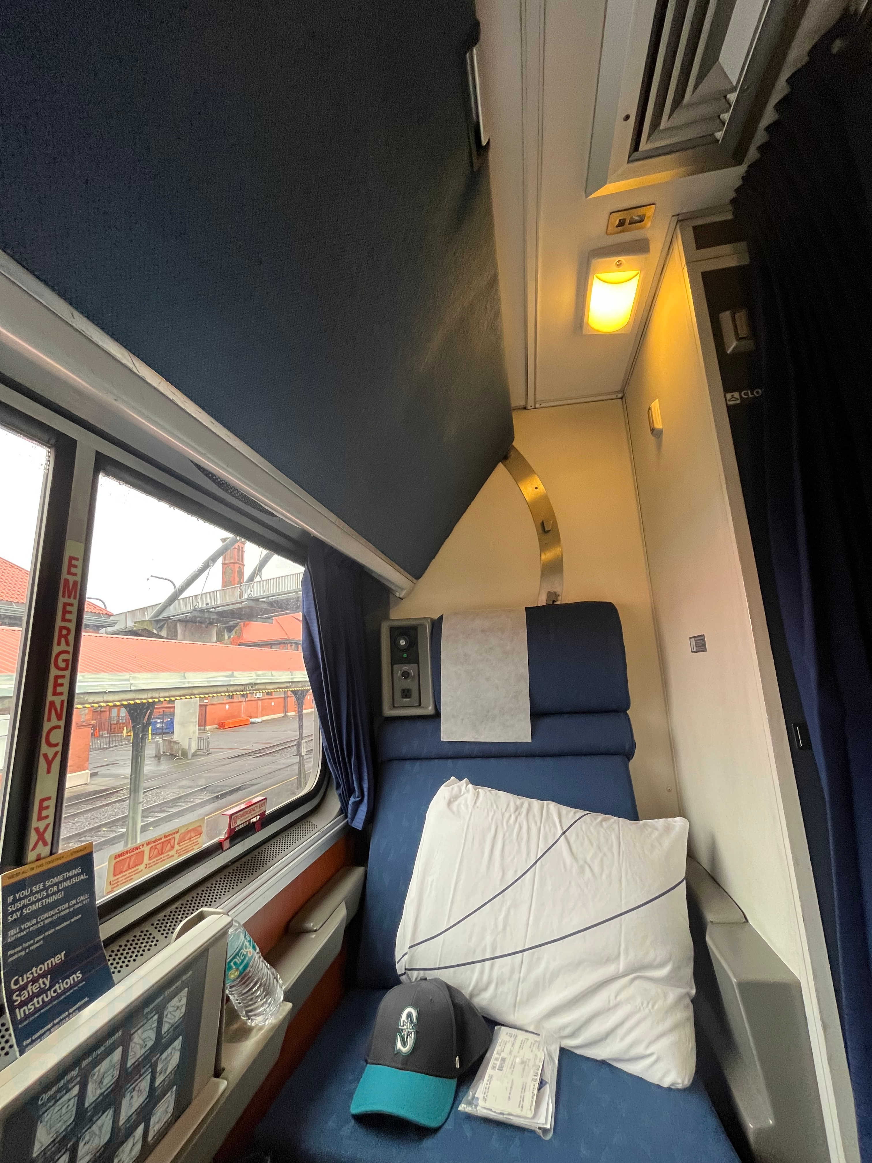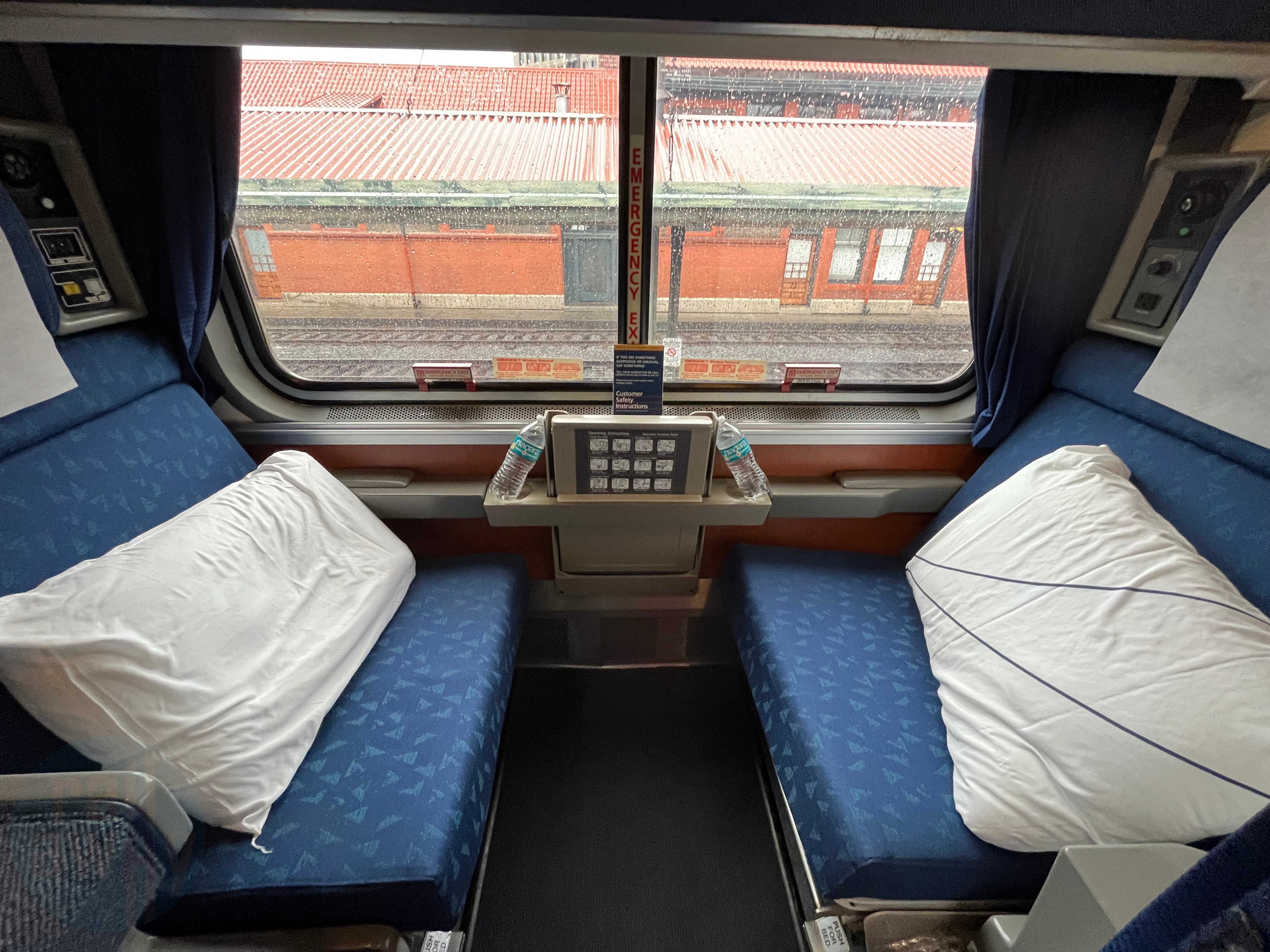 The most affordable sleeping car accommodation on the Empire Builder is the Superliner Roomette – and this is what I had booked for my trip all the way to Chicago.