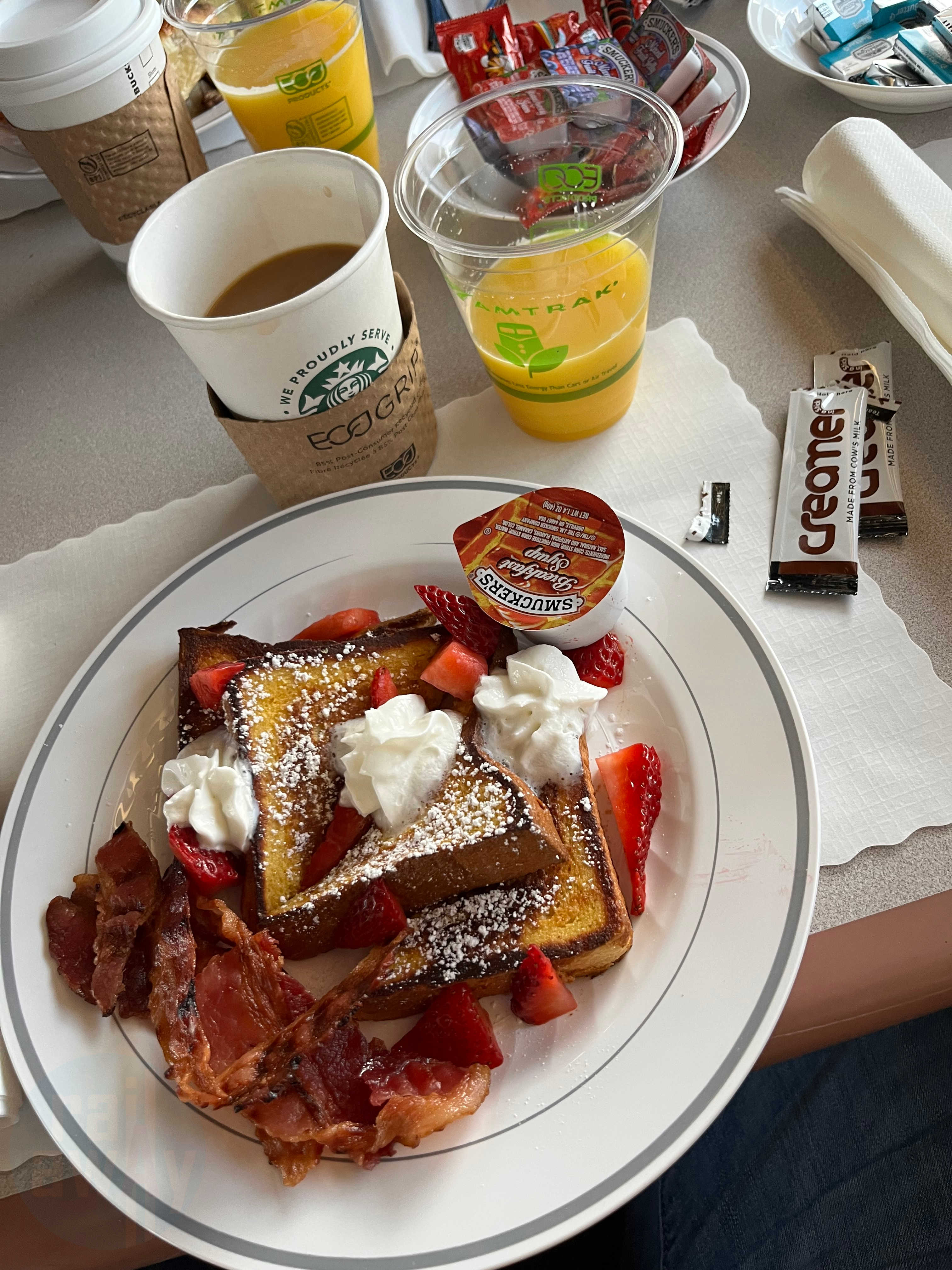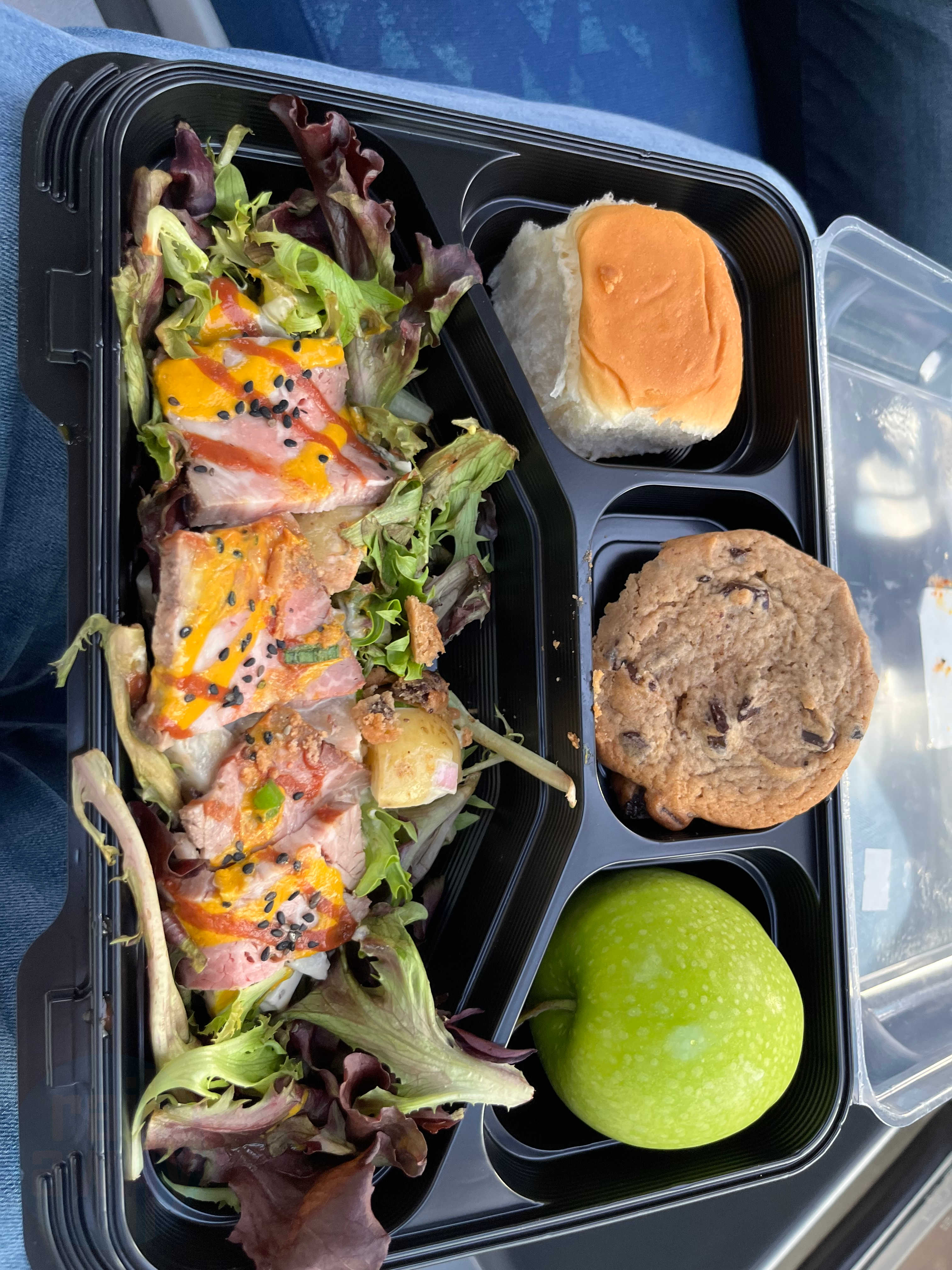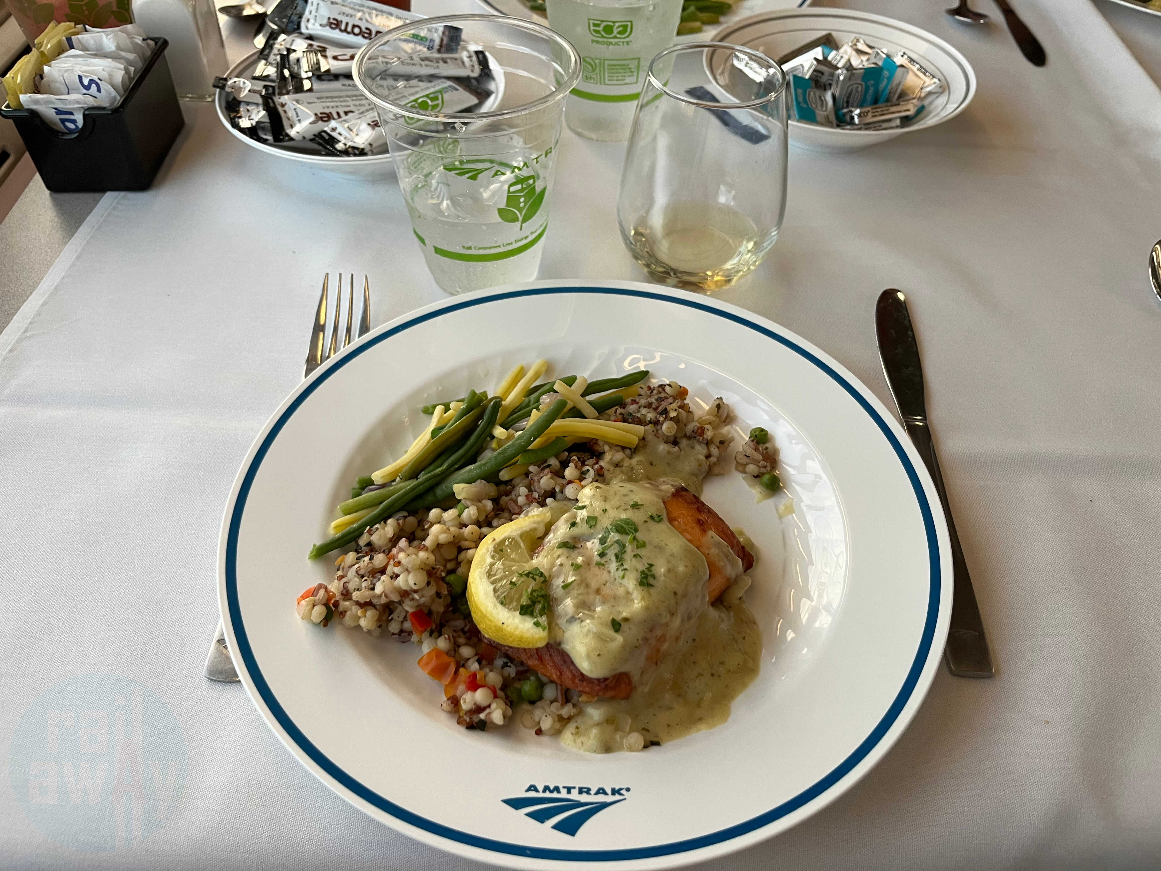 The boxed meal was rather underwhelming compared to the Dining Car meals, if I’m honest, and also we arrived late so my friend was stuck with shrimp, which was the only option remaining. Amtrak didn’t stock any additional meals, so if your first choice has gone then that’s that! Don’t end up with shrimp guys and get there early!