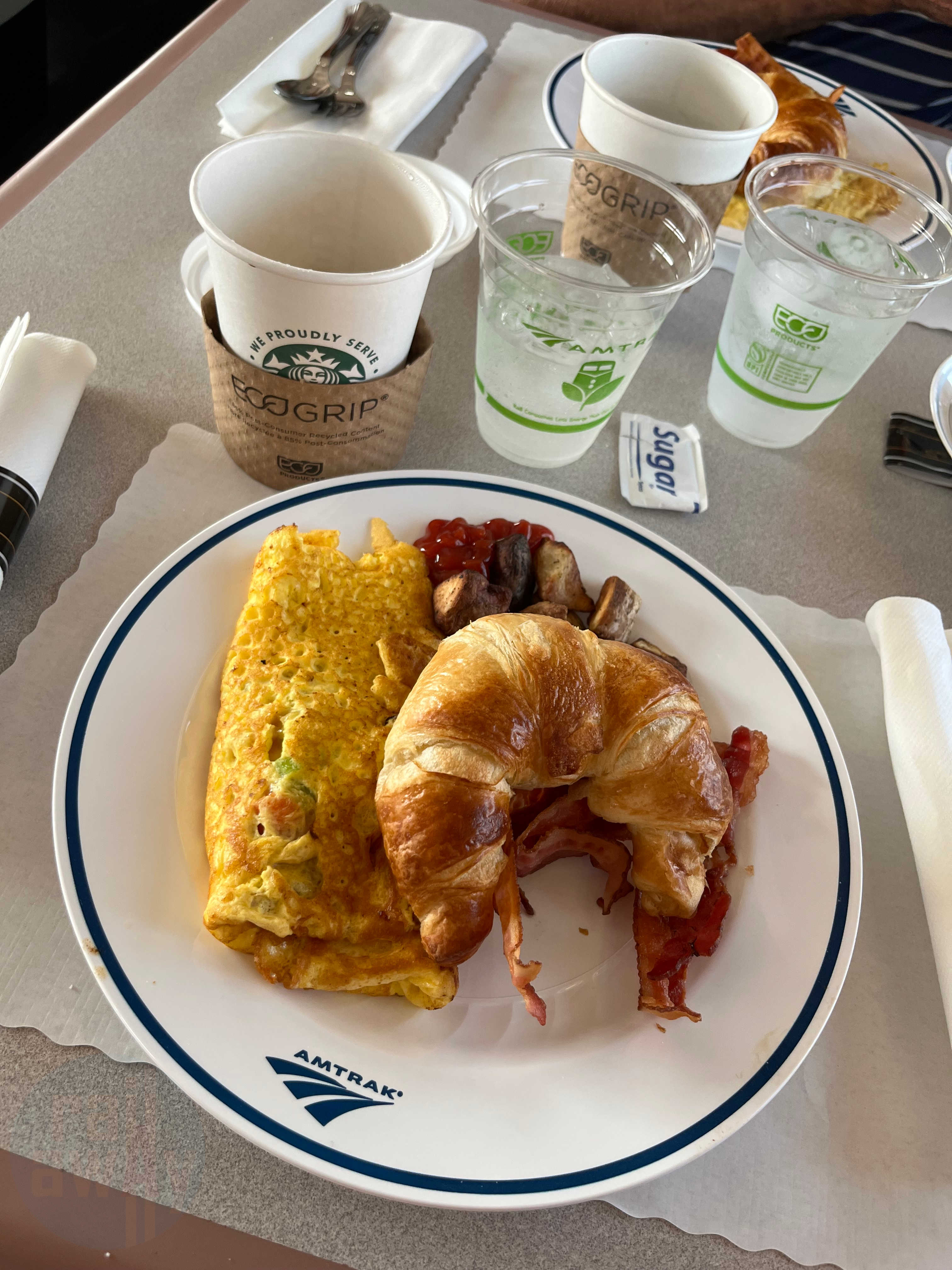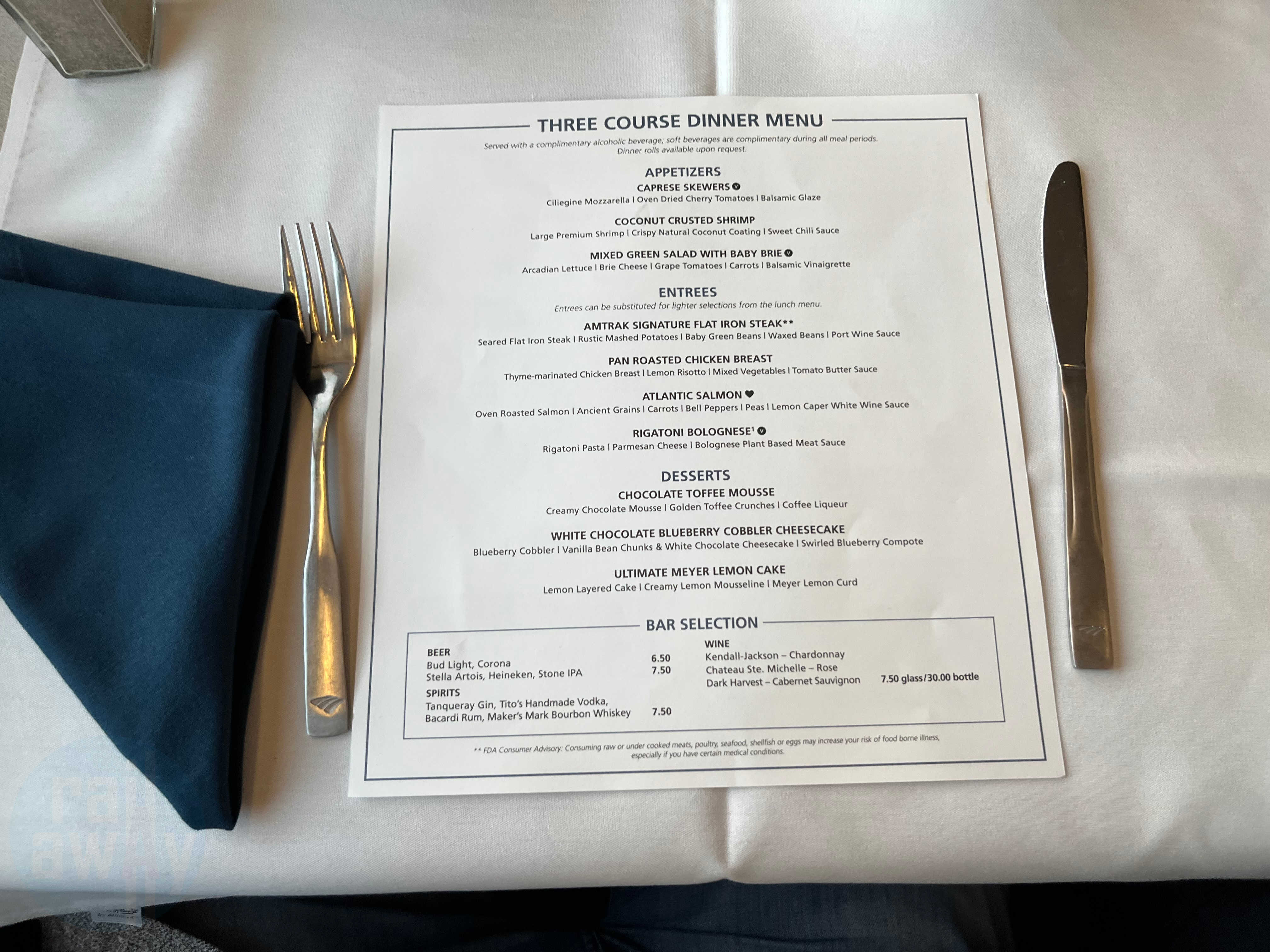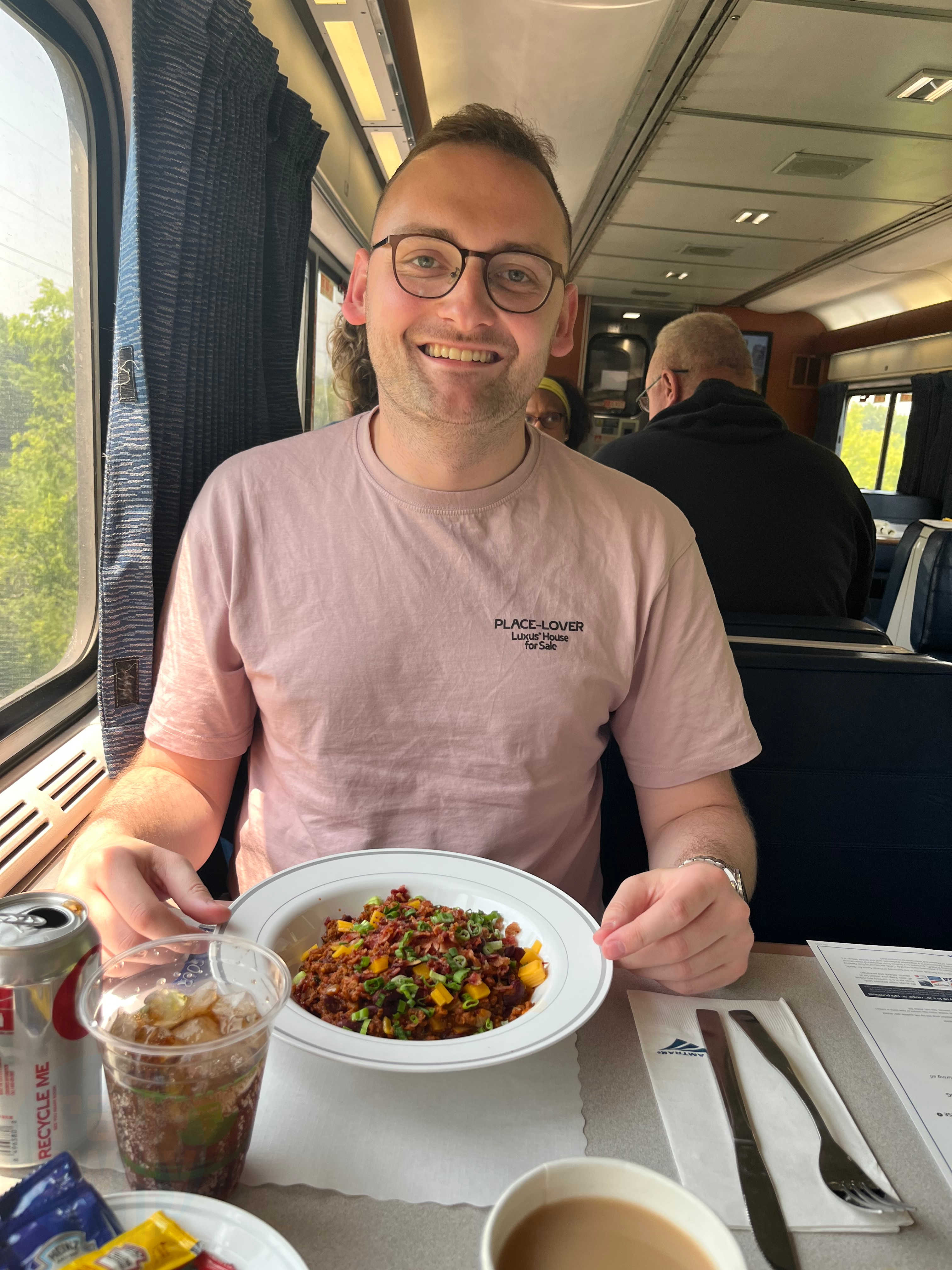 The boxed meal was rather underwhelming compared to the Dining Car meals, if I’m honest, and also we arrived late so my friend was stuck with shrimp, which was the only option remaining. Amtrak didn’t stock any additional meals, so if your first choice has gone then that’s that! Don’t end up with shrimp guys and get there early!