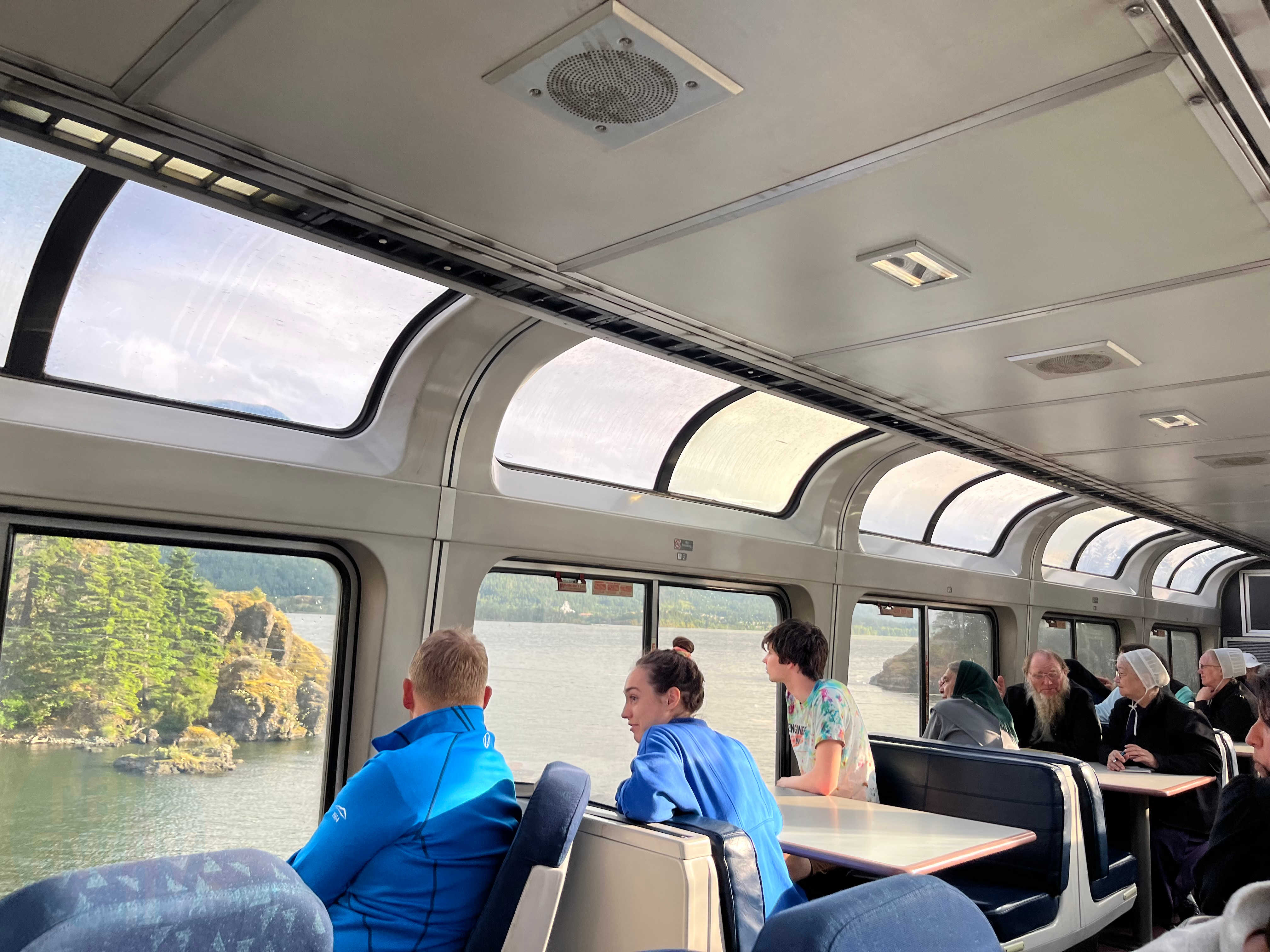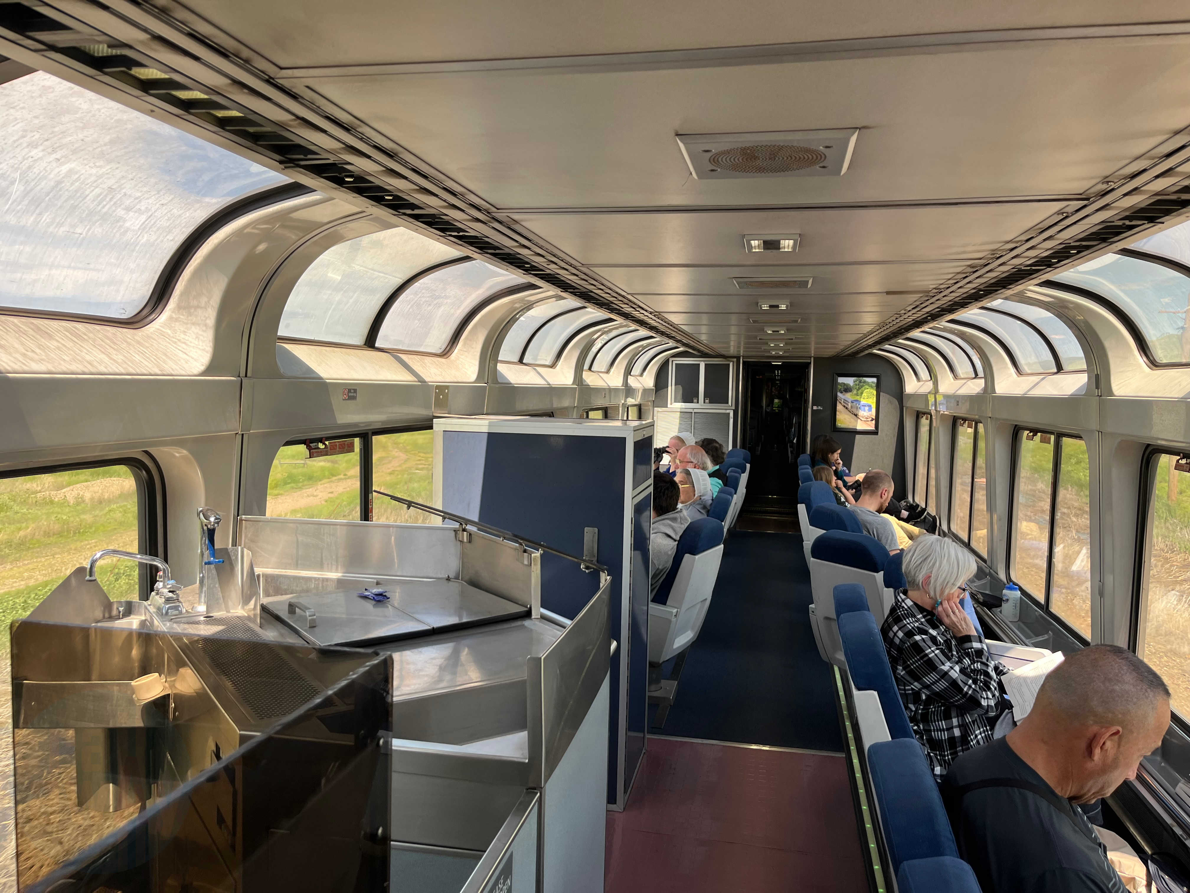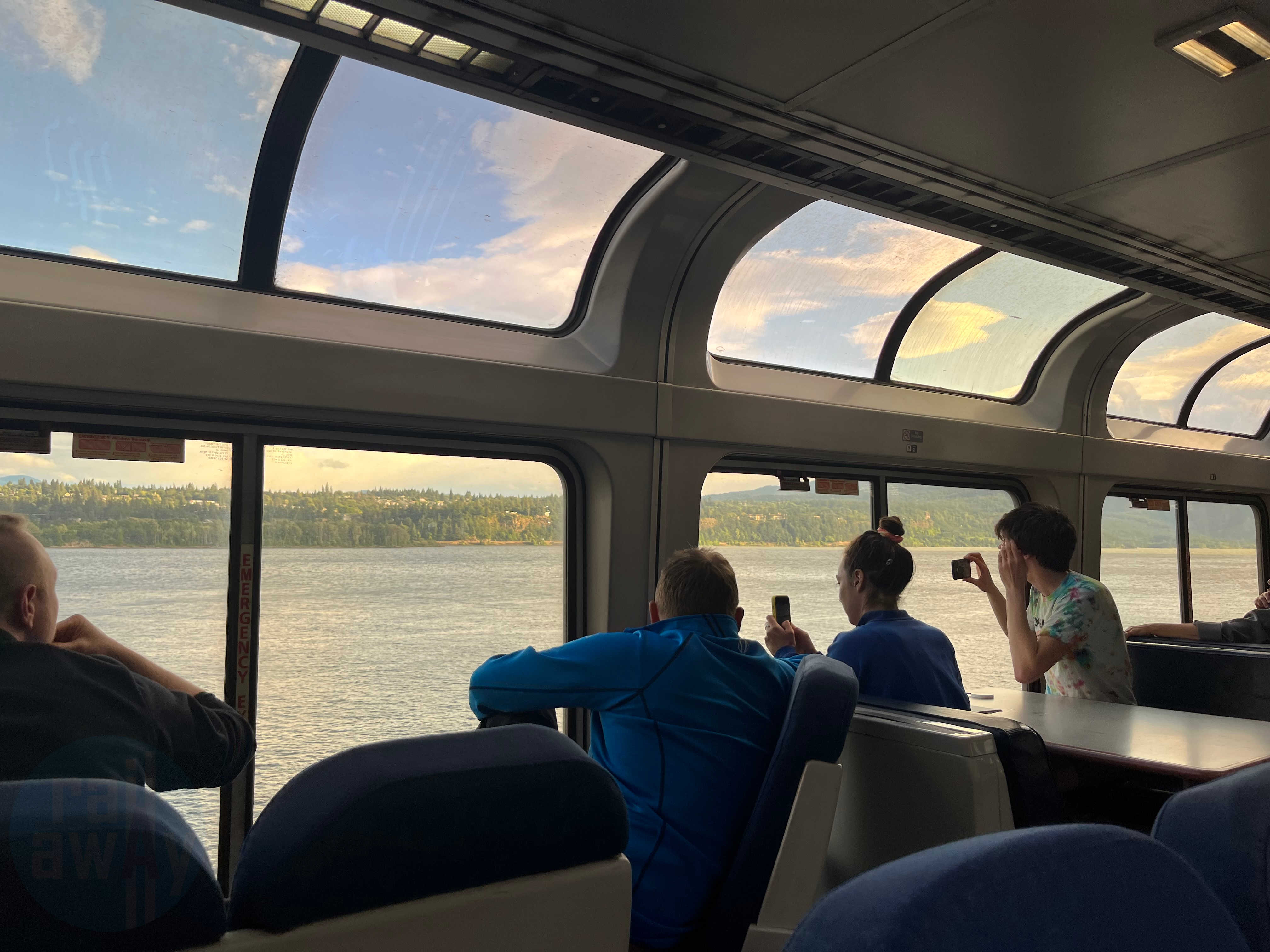 The Sightseer Lounge is always a hub of activity during the day on long-distance Amtrak services. Anyone onboard has access the Sightseer Lounge so as you can imagine it’s very popular. On our trip, there was even a guide commentating along the route.