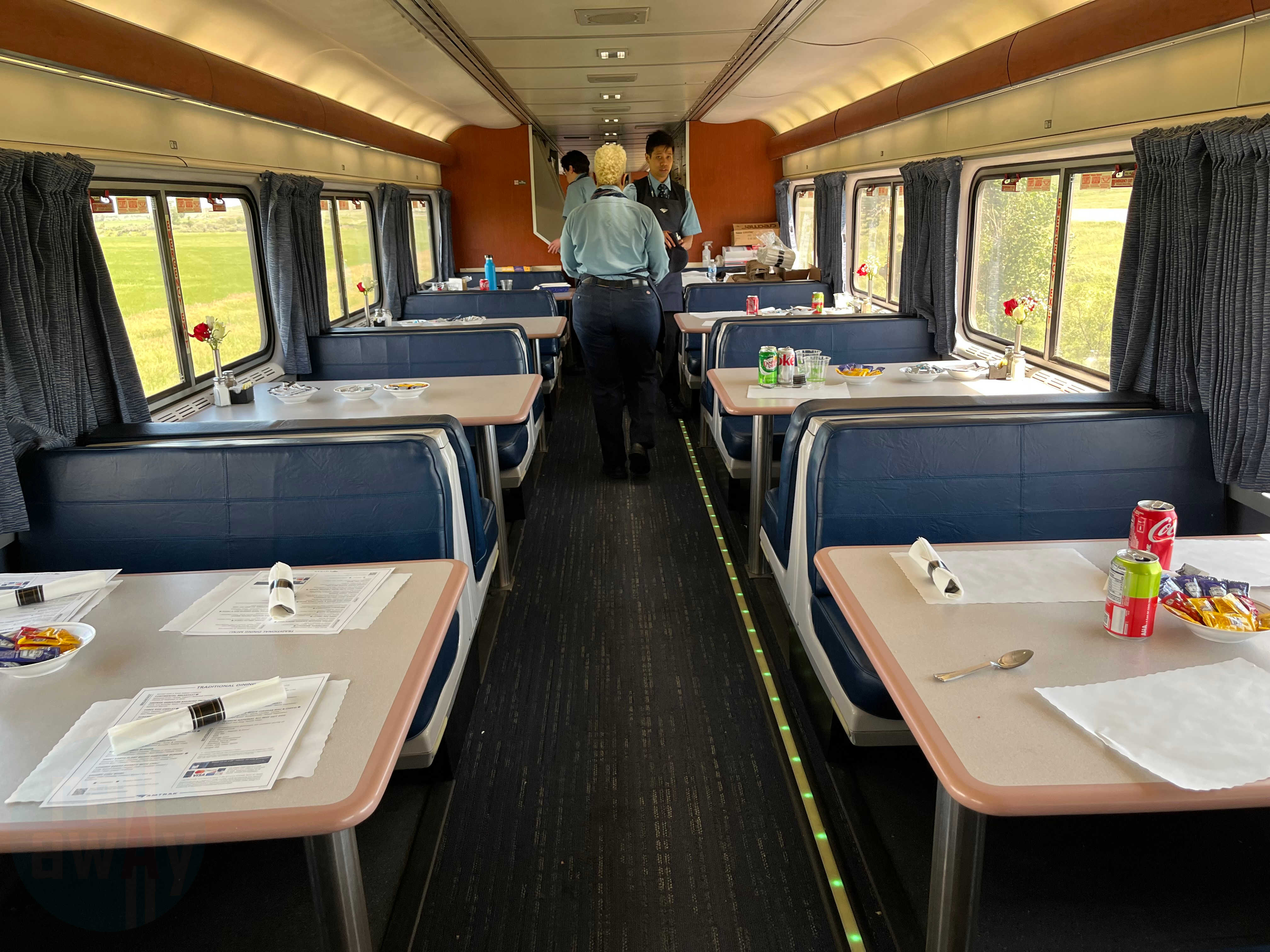 Now finally onto one of the real highlights from the trip – the Dining Car. Here was were the complimentary meals were served to Sleeping Car passengers, including breakfast, lunch and evening meal. The Empire Builder is one of the Amtrak routes that regained its ‘Traditional Dining’ service and for those who’ve travelled an Amtrak route with the alternative ‘Flexible Dining’. (as I experienced on the Capitol Limited) will know how much of a step up this is. Think travelling chef vs microwaved food – it’s never the same. Each meal was freshly prepared on the Empire Builder and delicious. The conscientious team in the Dining Car were friendly and passionate, and clearly proud of the menus they were serving. They injected their own personalities into the service as well which always makes for a positive, memorable experience.