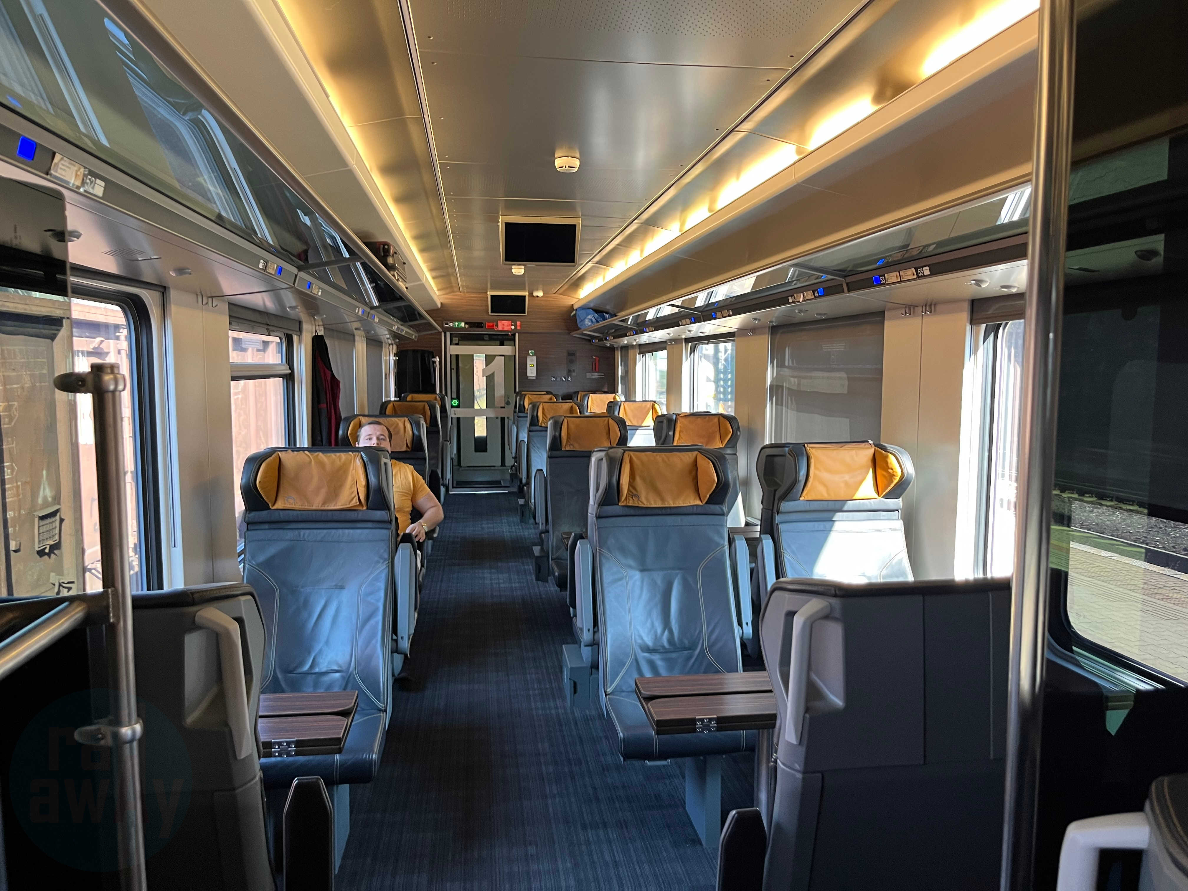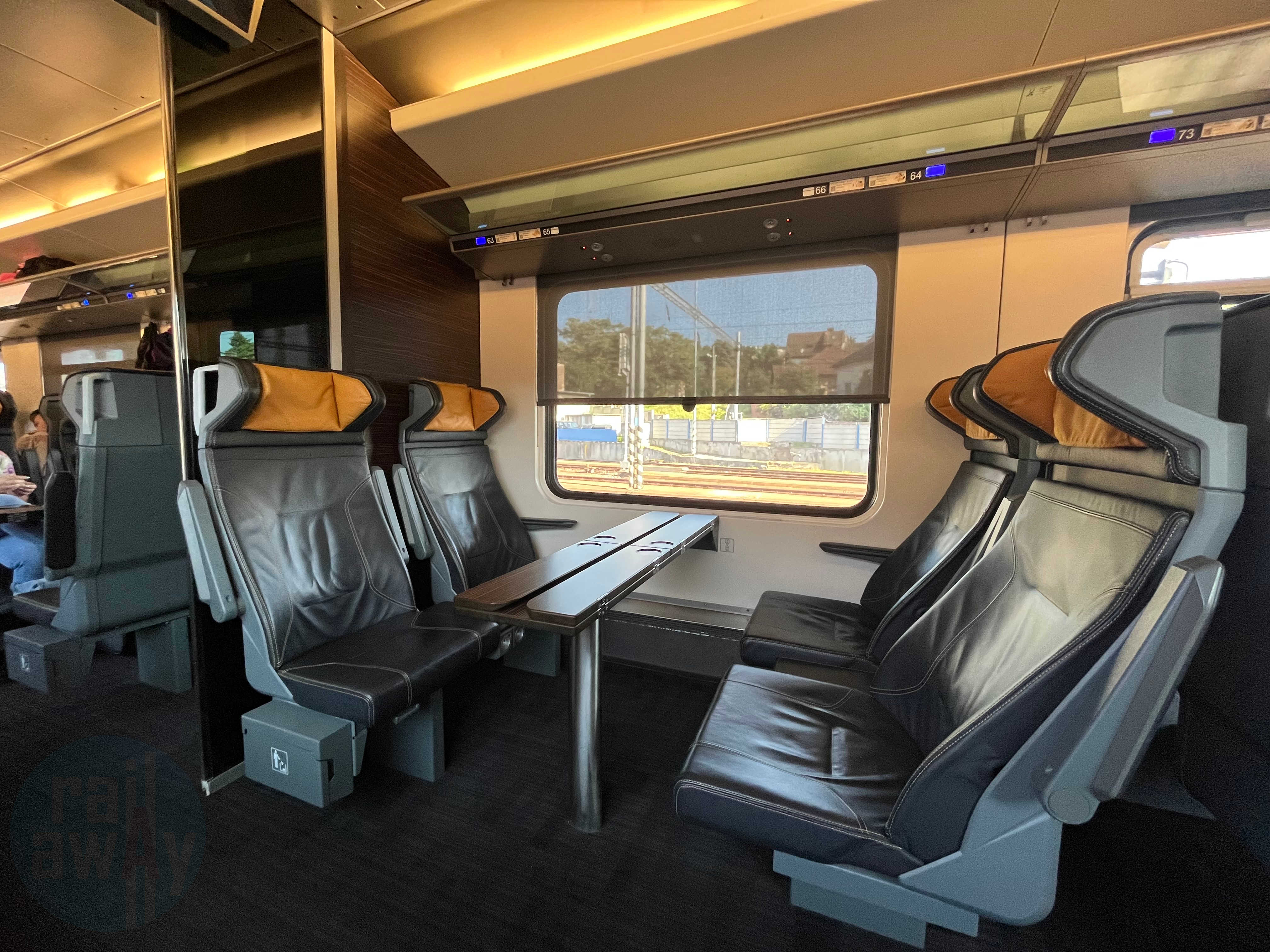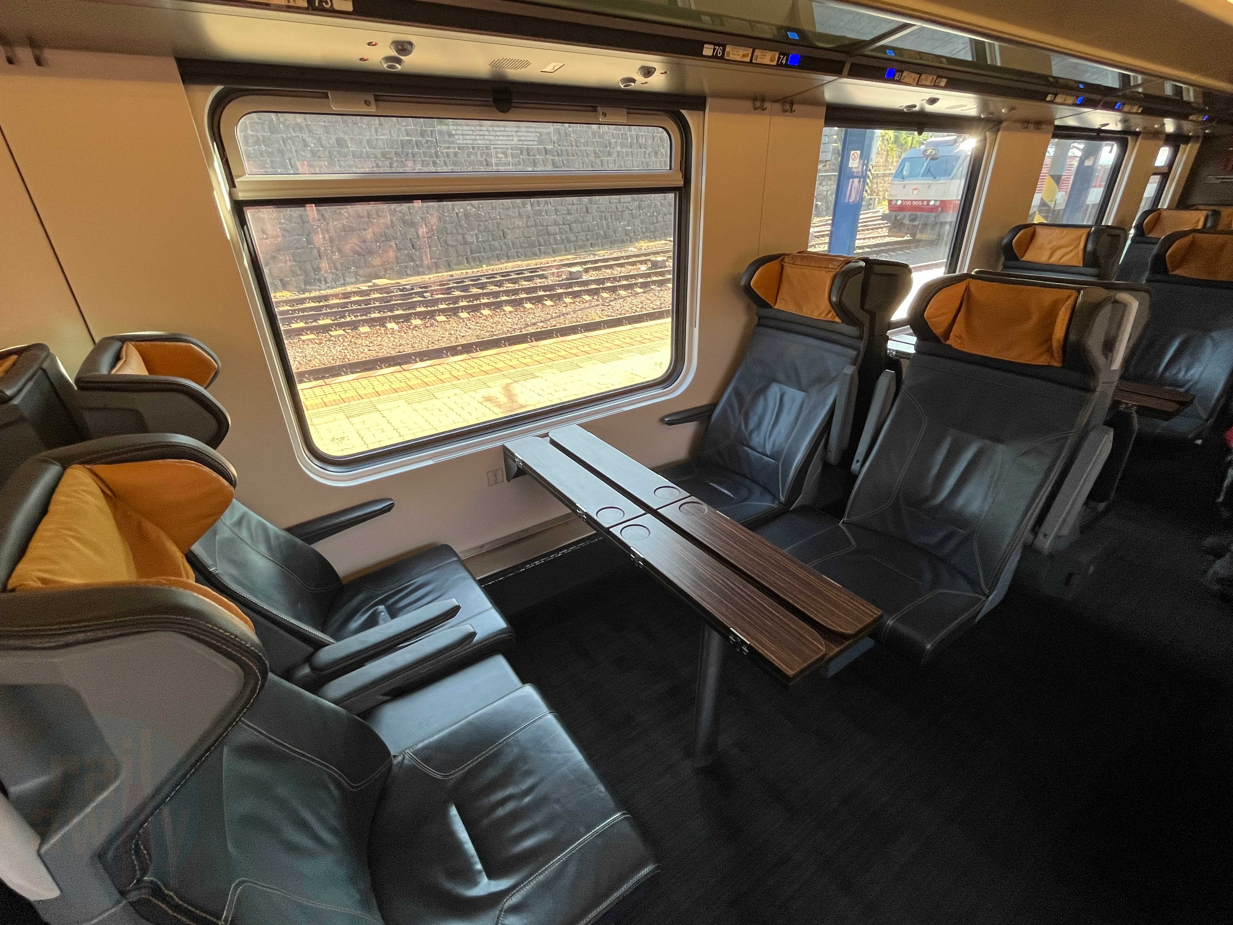 First Class accommodation typically comes in the form of two different carriages types – one is seating in an open saloon with 2+1 seating while the other is seating in compartments of six seats. It’s a lottery which one you get, though you can check the insightful Vagonweb that posts scheduled train compositions, with pictures, for the train number. The open saloon, which I had travelled in, had recently been refurbished with journey information screens, smart leather seats with dark wood tables – a very comfortable way to travel for the long trip. The seats in both carriage types recline and have generous legroom and all carriages are air-conditioned.