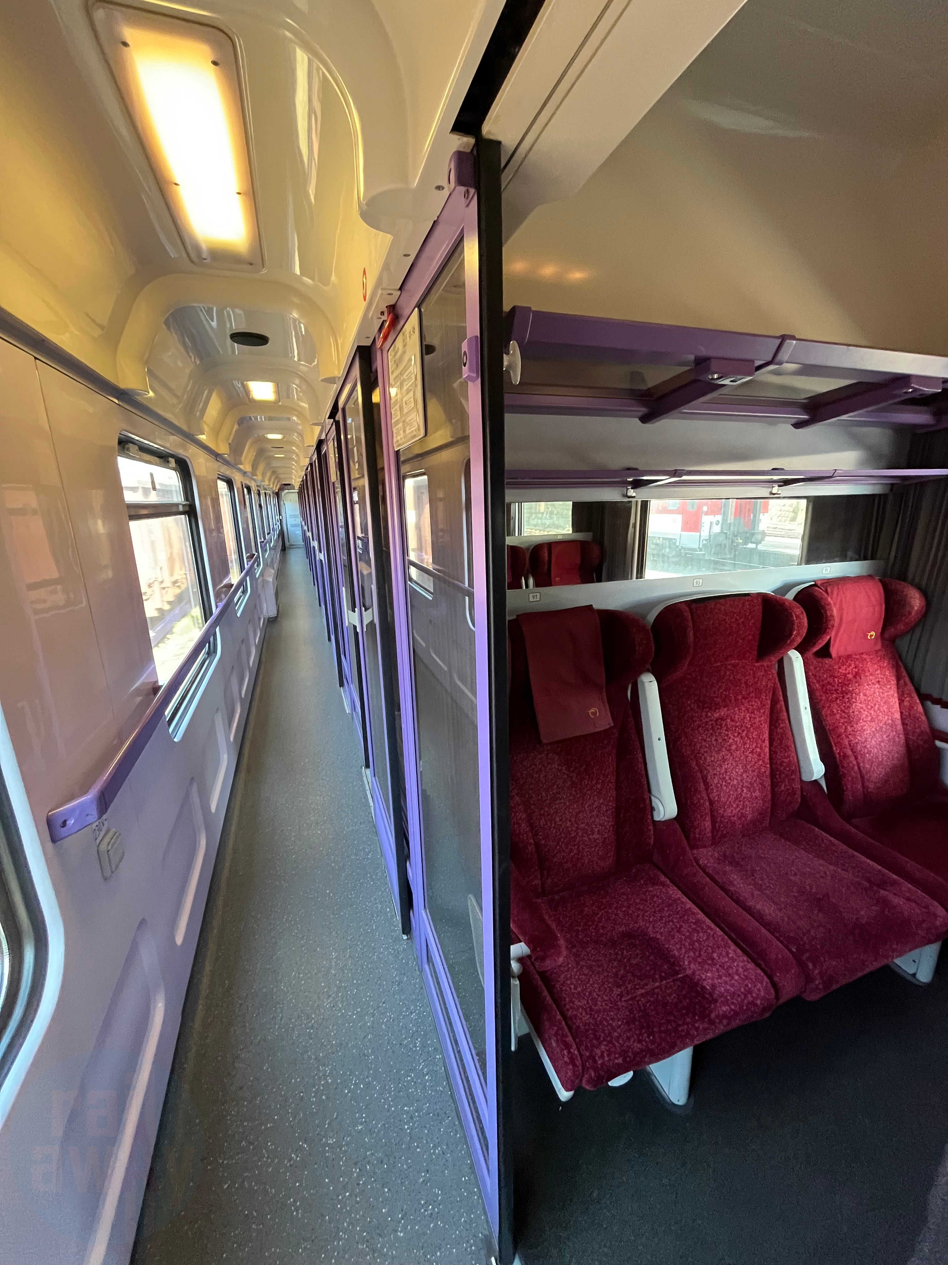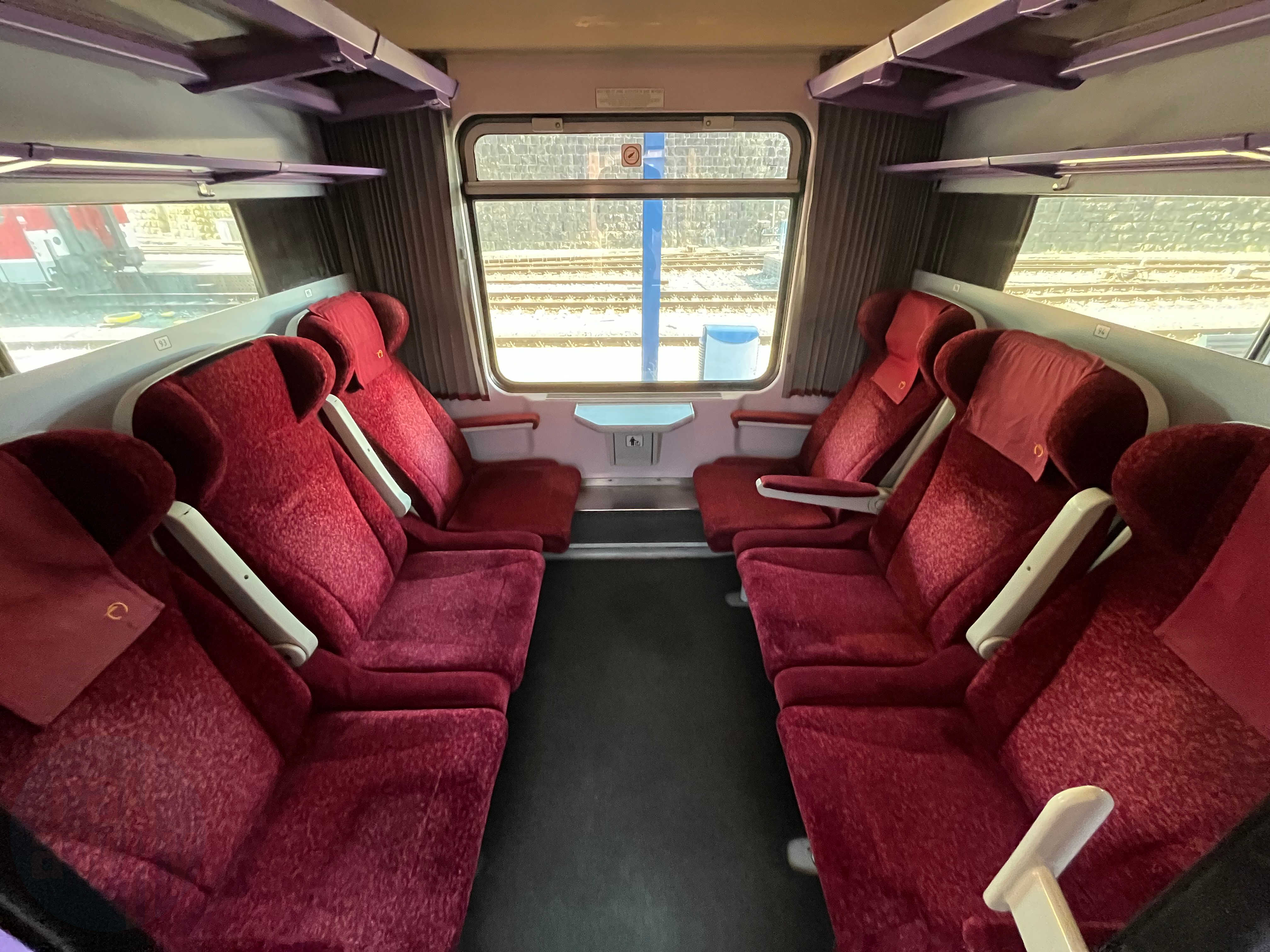 Second Class accommodation is not dissimilar to First Class accommodation with also the choice between compartment and open saloon carriages, again depending on the specific departure. The compartment carriages have six seats in each compartment, however, the compartments are less spacious than those in First Class. The open saloon carriages have seating in a 2+2 configuration. All Second Class carriages have air conditioning. First Class on these trains offer more elbow and leg room and tends to be a quieter environment to enable a more enjoyable trip.