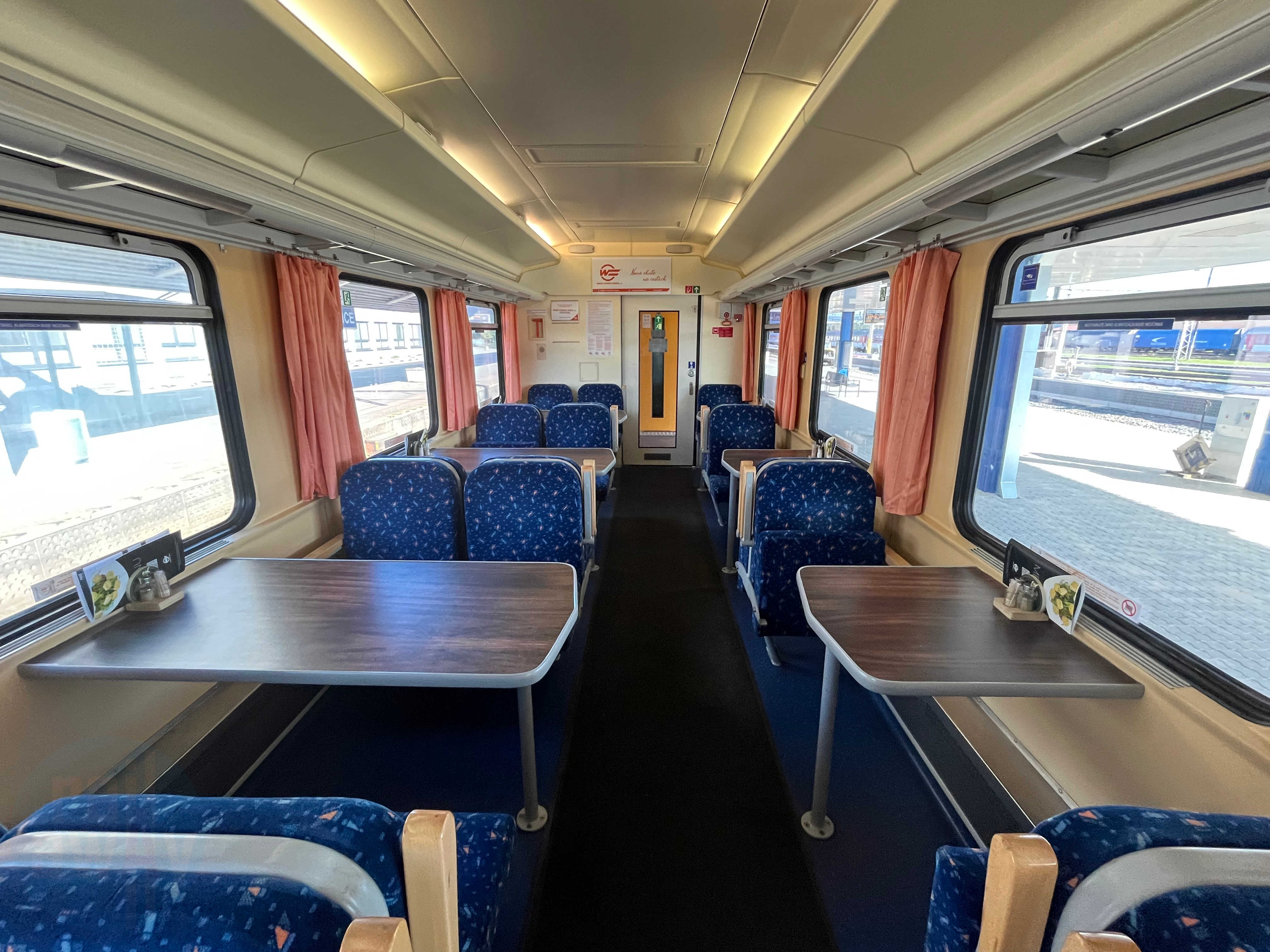 The following day we were graced with a “WRRmeer” type Dining Car complete with more retro salmon pink curtains. This type of Dining Car has a separate bar area but, more importantly, still offered the same full menu available as the “WRmz”. The menu can be viewed here.