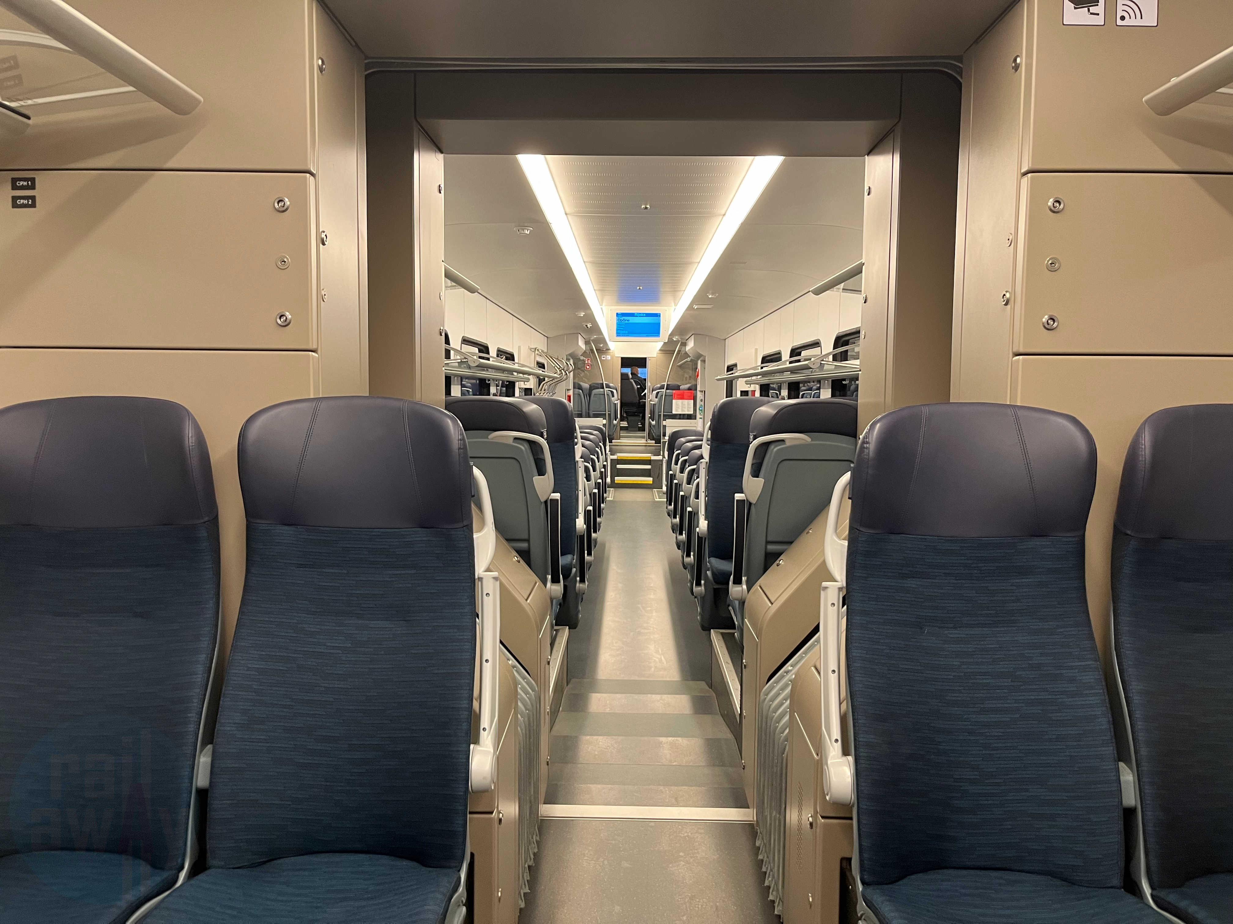 The seats are missing tables, which is the only drawback I could find on the otherwise fantastic interior on these trains. The ambience of these trains is perfect with soft glow lighting and a just-right temperature onboard. Legroom is also more than enough.