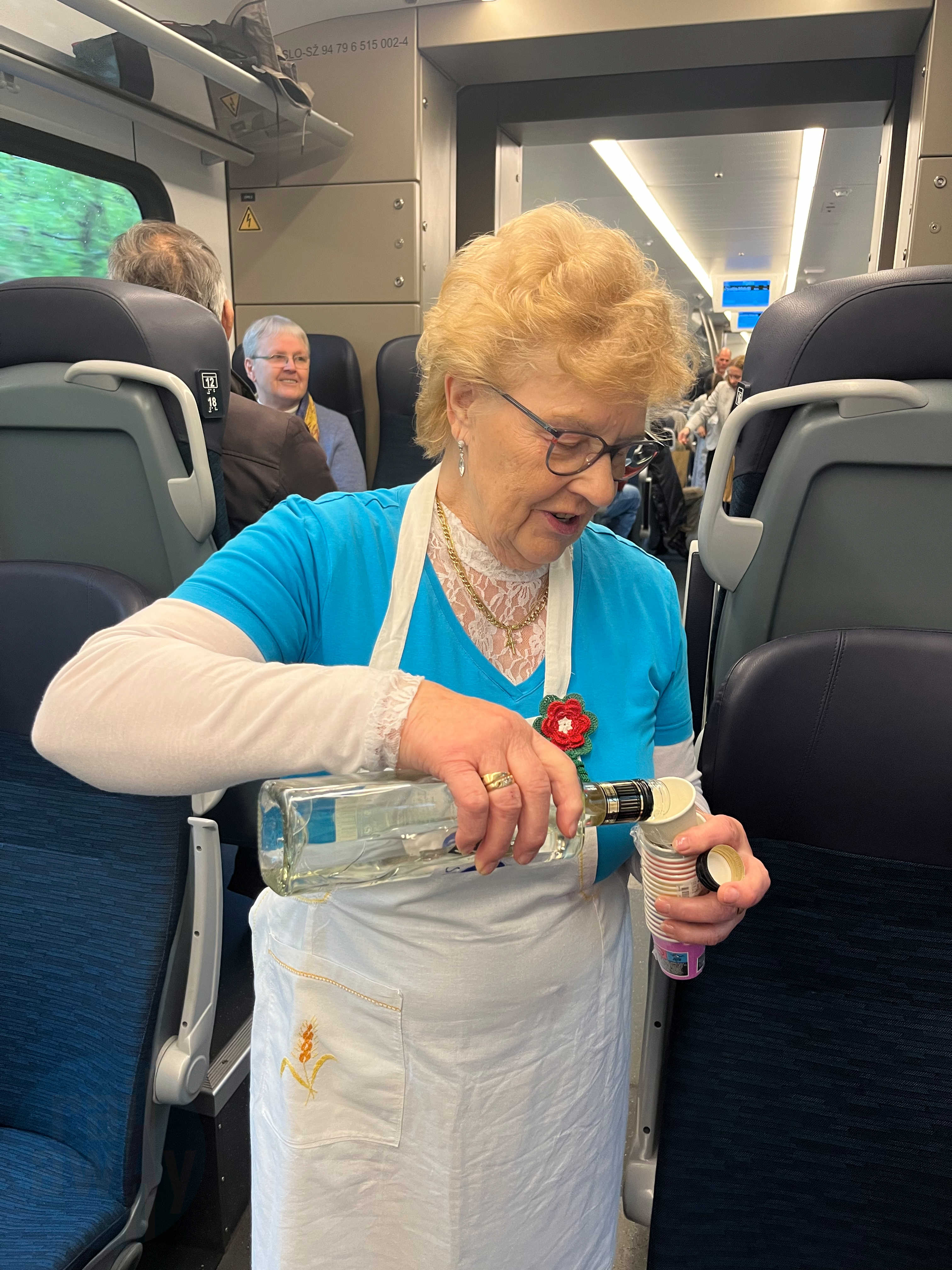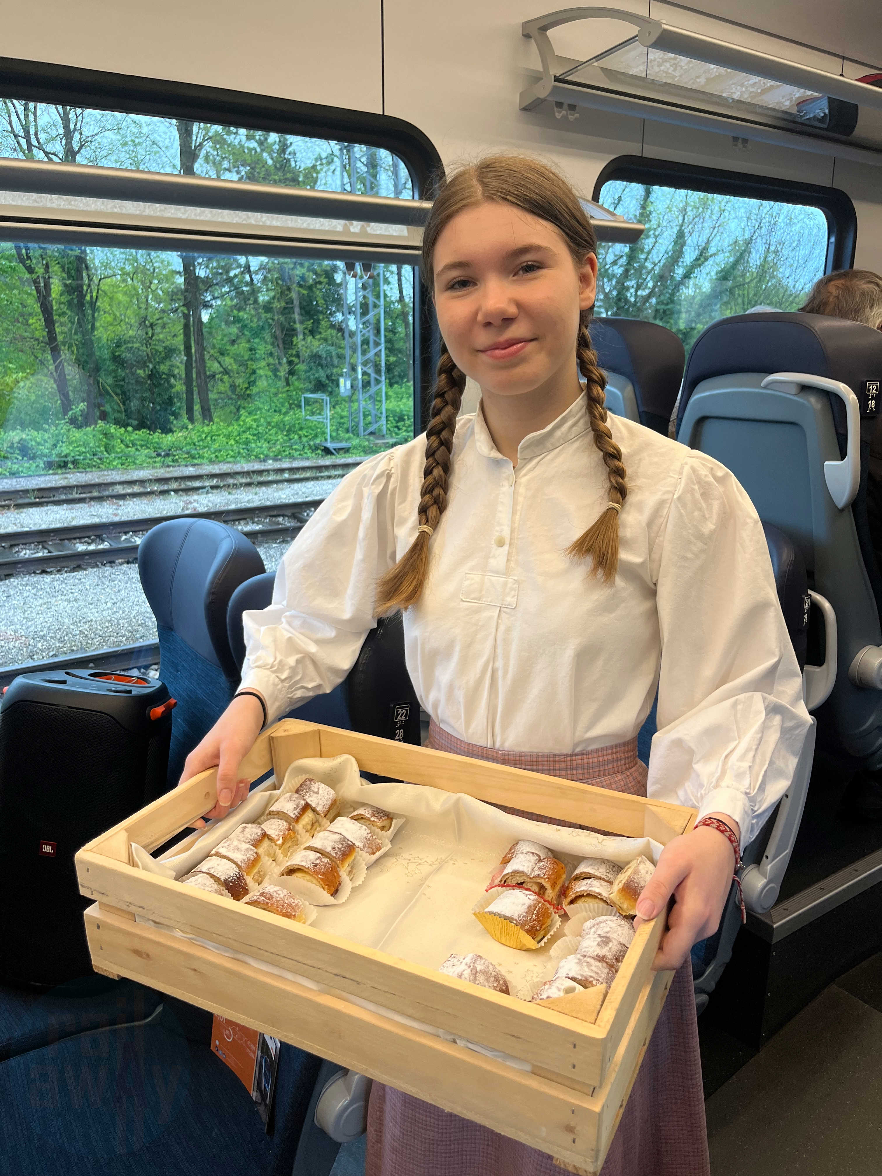 After the train made its second call at Divača, a party atmosphere filled the train as local volunteer groups, tourist boards and singers jumped on. Various Slovenian cakes were being handed out including potica, kremna rezina, prekmurska gibanica and crostoli by ladies in traditional dress as well as some obligatory (not really, but I couldn’t say no) plum brandy, or slivovitz, served just after at approximately 9 am!