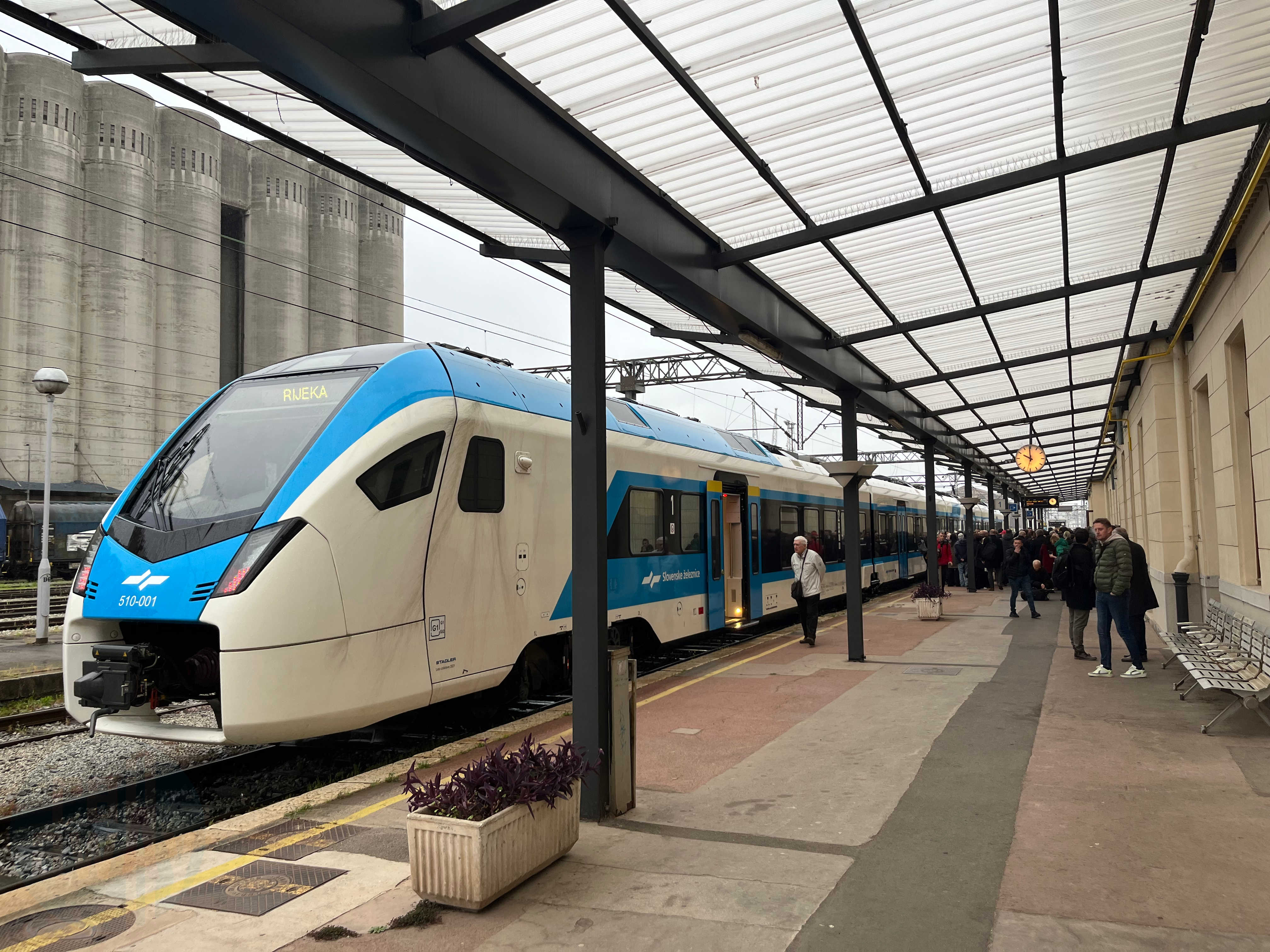 The southbound train, operated using a brand spanking new Slovenske železnice Stadler FLIRT, leaves Villa Opicina in the morning at 07:50, arriving at Rijeka for 09:54 (Train MV 1801), with the northbound service departing in the evening at 18:25, arriving at 20:40 (Train MV 1812). This opens up an option for those staying in Trieste, or for those who reside in several places in Slovenia, to make a day trip to the Croatian city known for its attractions and shopping and travelling with a journey time competitive to the coach.