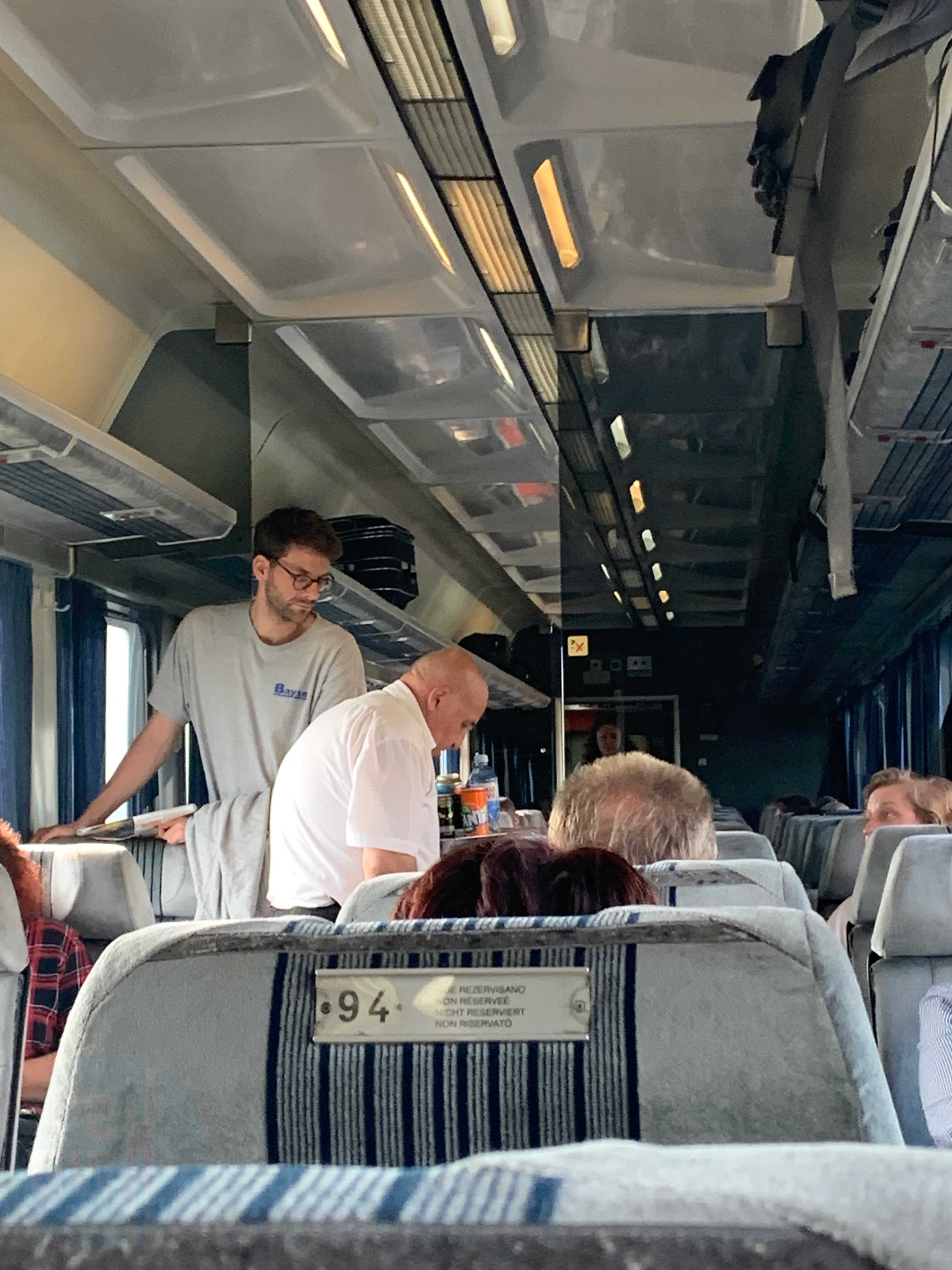 Fully expecting that there would be no restaurant or bistro carriage, we had planned for this by taking advantage of the eateries at the railway station in Zagreb before departure. Officially there wouldn’t be any food or drinks available onboard, however, yet another treat was in store for us.
