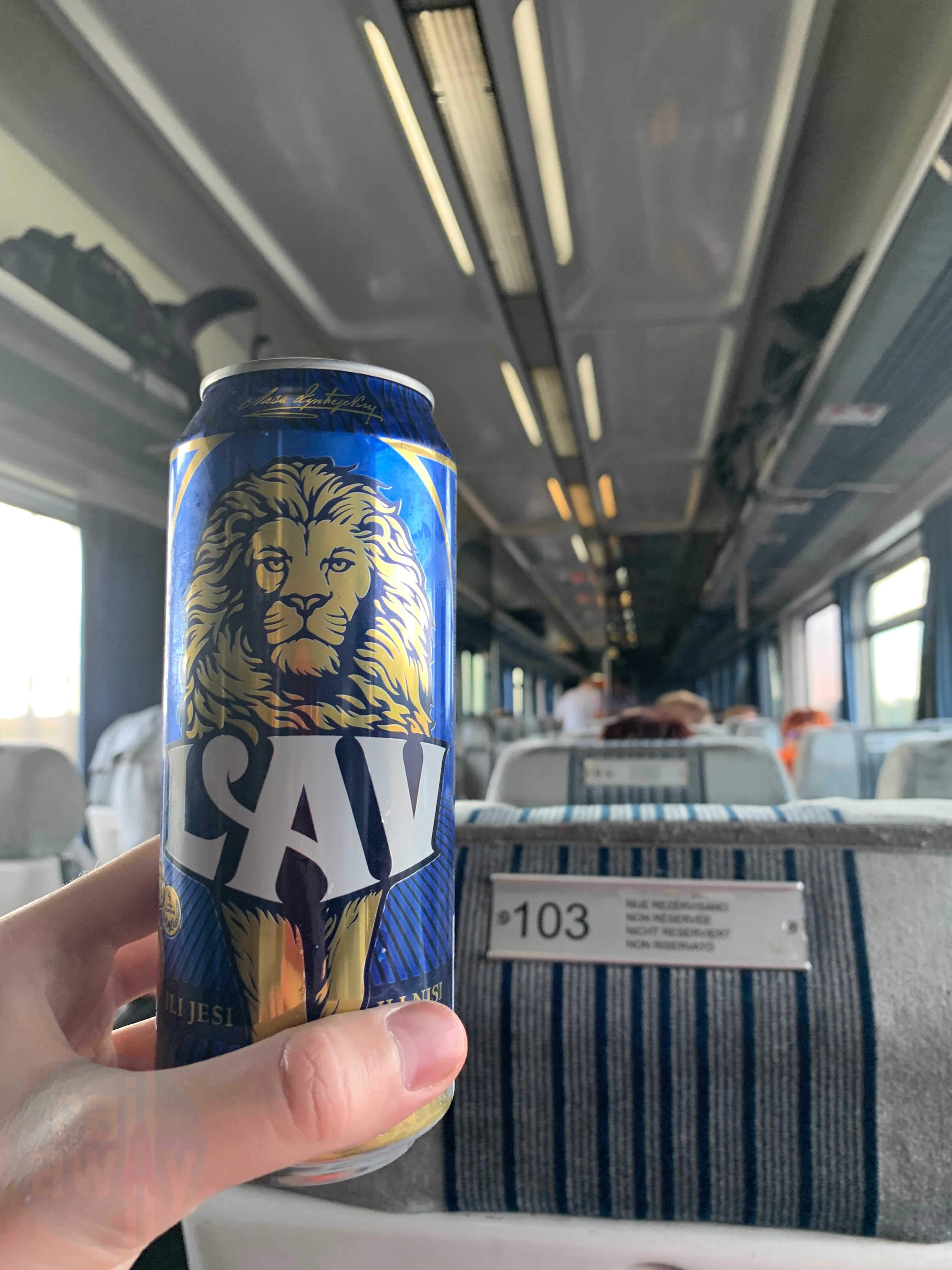 Successfully catching the popular guy when he re-boarded, my much needed order for “pivo”, or beer, was placed and he accepted both Serbian Dinars and Euros – ideal to use up some change we had accrued from stops in France, Germany and Austria. A few moments later, he turned up again with a can of ‘Lav’, my first taste of Serbia.