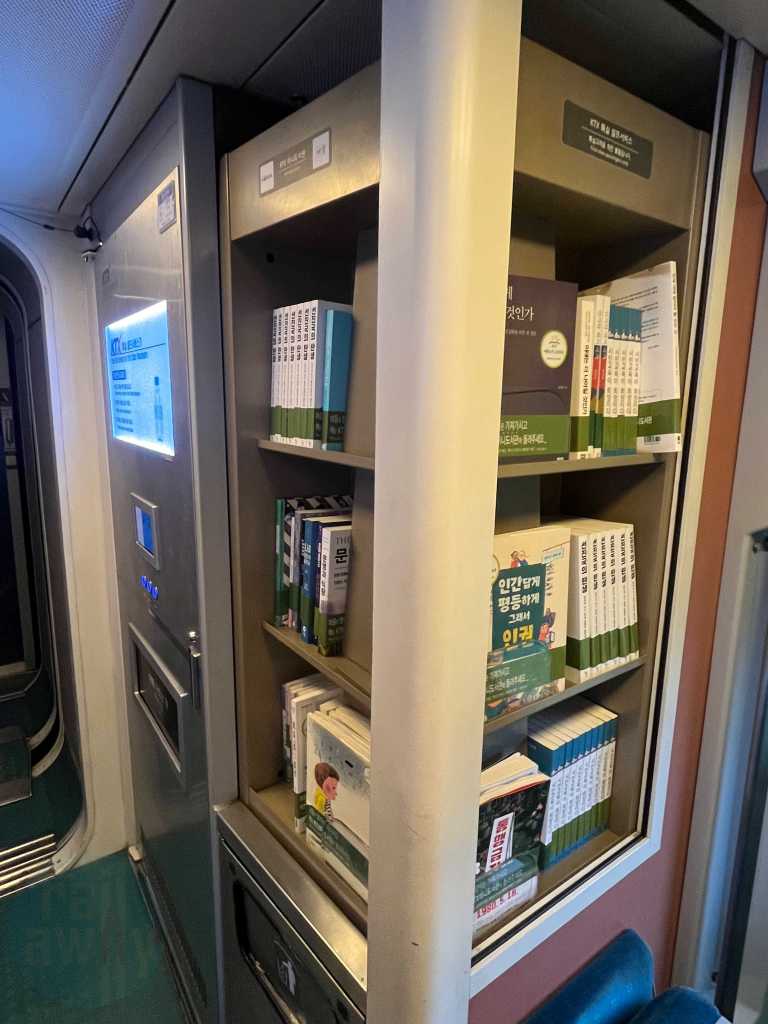 A train first for me is that the KTX-I also features an onboard library for First Class passengers. Each book had a sticker with the KTX, probably discouraging customers from taking them off the train. I’m not sure how much of a book you can read in a 2 hour trip but you can certainly give it a go. If anything it encourages you to rebook another trip to continue the novel on a subsequent journey!