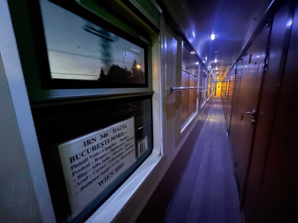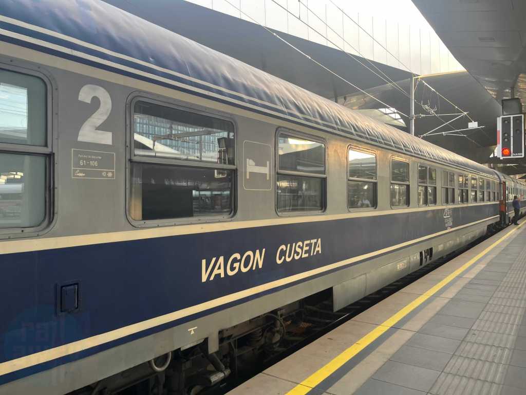 Of these, for the full trip from Vienna to Bucharest, there are typically two CFR sleeping cars, one CFR couchette car and two CFR seated cars. There is also a CFR couchette car bound for Cluj Napoca that is detached early morning in Simeria.