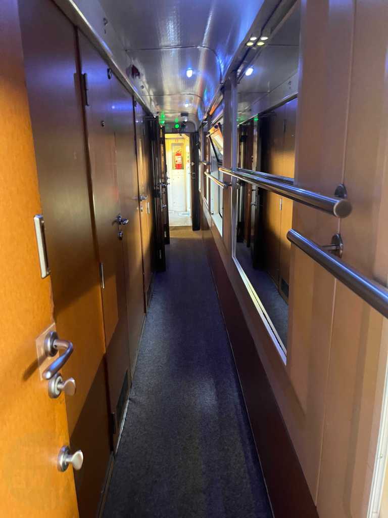 On the way back from the Dining Car, in trying to maintain the security of the sleeping and couchette cars, I had encountered one of the couchette car hosts who didn’t want to let me back to the sleeping car and didn’t speak English. With hand actions, I stated “Dining Car to Sleeping Car” and he soon let me through. Don’t let this stop you going to the fabulous Dining Car!