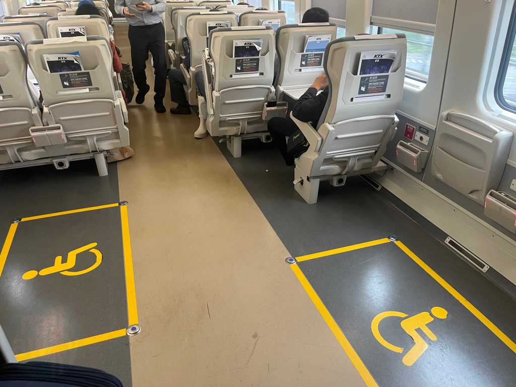 On a positive note the ride of the new train was very smooth and the increased speed didn’t result in a compromised ride compared to the KTX-I. There was also power sockets available at every seat including an EU plug, USB A and C charges, in addition to wireless charging. It was probably the most advanced train for device charging options!