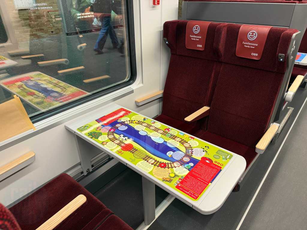 The new RailJet trains also feature a familiar ‘Family Zone’ in Economy Class, similarly to its predecessor, the RailJet 1.0. These feature table seats with different games on each table to entertain the kids. I really like this dedicated space.