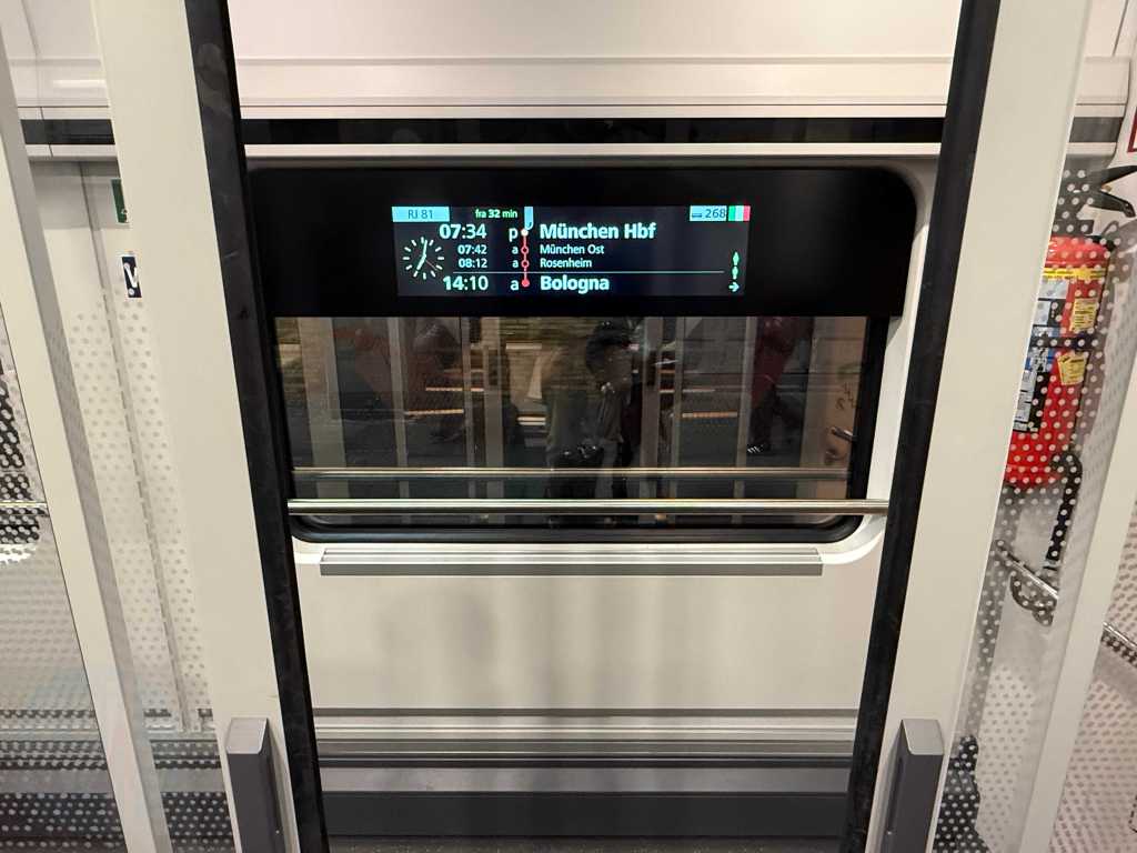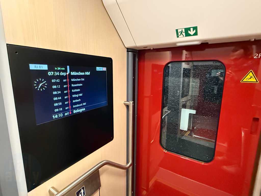 The trip from Munich to Bologna crosses two borders on the course of its journey – from Germany to Austria and from Austria-Italy. As all three countries are in the Schengen free travel area, expect there to be no passport checks at all. There are some temporary checks on the Germany-Austrian border, this was announced, but no border police joined the train!