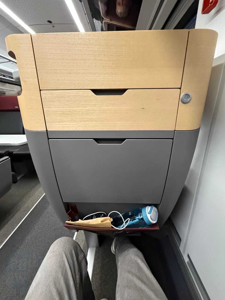 It’s worth mentioning at this point that I did find the First Class seat a little hard at first too, but as the journey went on this became less of an issue because of the ergonomic design. I could’ve sat for longer than seven hours in it quite easily to be perfectly honest. So, to conclude on the comfort of the Economy seat, I would need to try a longer trip in Economy Class but first impressions weren’t great.