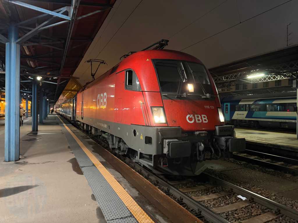 EuroNight train carriages, like their daytime EuroCity counterparts, are typically hauled by locomotives of the national operators. These are normally replaced at each border. The EuroNight ‘Kรกlmรกn Imre’ unusually uses locomotives of one national operator, irrespective of the country operated in. These were Austrian railways (รBB) types for the full trip. This, at least, results in efficiency in saving the swapping of locomotives at each border. This was a time saving that was very much needed for this trip as I explain later…