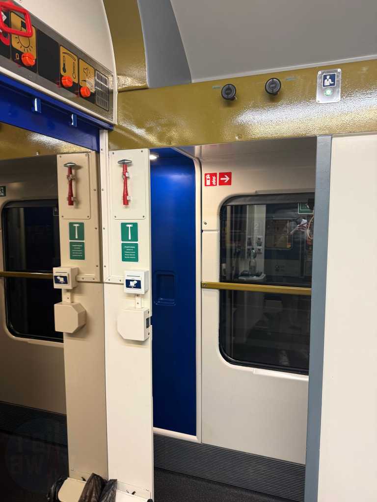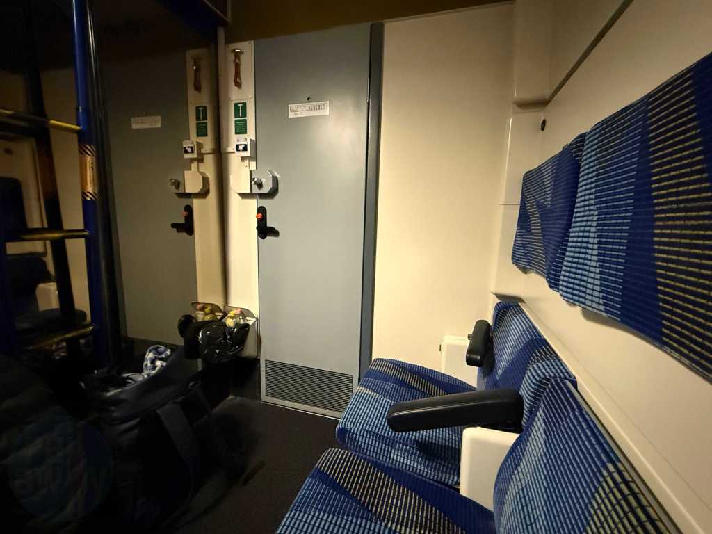 First impressions of the MรV sleeping car is that the inside has been refurbished as well. This now features brighter lighting and the blue theme continuing from the exterior – along with dashes of yellow and gold in places.