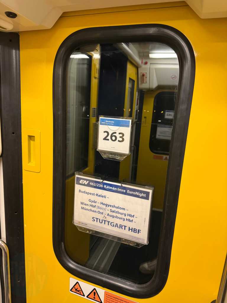 During a chilly evening in Budapest in November 2024, I boarded the EuroNight number 50462 ‘Kรกlmรกn Imre’ for a prompt 19:40 departure. I travelled in a private sleeping compartment as far as Munich in the carriage destined for Stuttgart. The scheduled arrival time was an early 05:50 – the following morning.