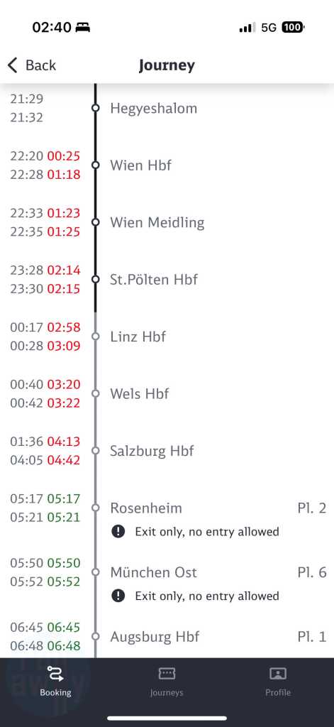 The DB Navigator app includes a feed of Austria’s real time information. Having woken up at 02:40, a quick search of the app showed we were more than two hours late. However, magically we would still be on time at Munich. How?